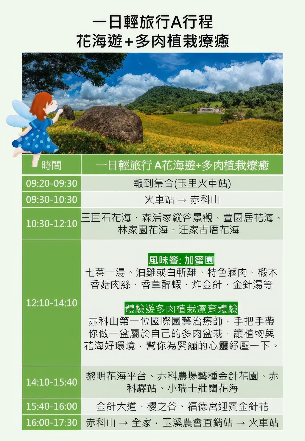 2. 因此行程為合團合車制,為了不影響其他遊客權益,請確認預定台鐵車次於集合時間9:30前抵達玉里火車站。