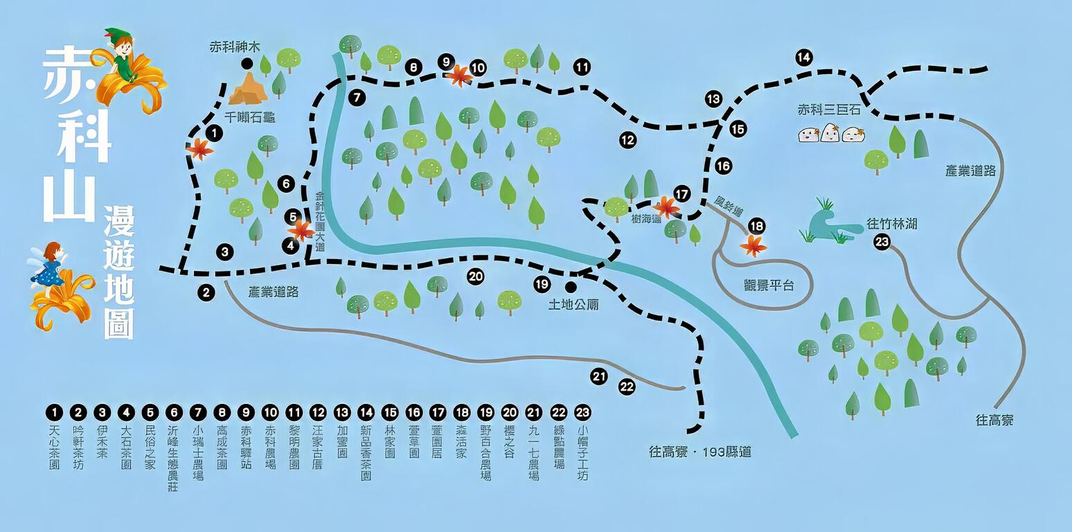 暢遊赤科山三巨石、小瑞士、汪家古厝、林家園、加蜜園、萱園居等全山知名景點,還有最新矗立於森活家的觀景平台可俯瞰縱谷大景觀、感受震撼;並且到在地農家體驗手作,將充滿赤科味道的紀念品帶回家,網羅赤科山上知名餐廳,為遠道而來的遊客端上金針料理及最熱情的問候,讓你感受到赤科山的溫情不再只是景點,而是可以每年一定要洄游的家。