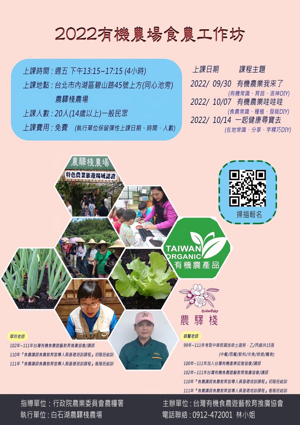 上課地點:台北市內湖區碧山路45號上方(同心池旁) 農驛棧農場