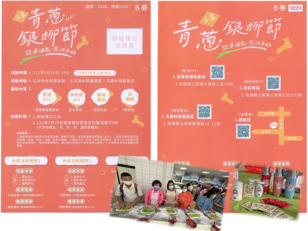 2.體驗券票根至青蔥文化館消費打九折(112.01.29截止)