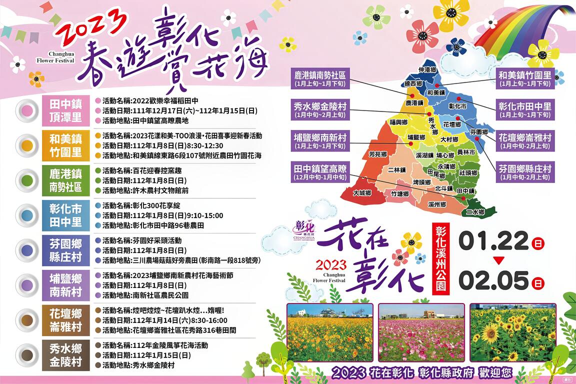 2023春遊彰化賞花海系列活動開跑囉~以農田花海創造清新、自然的景觀供國人觀賞,並揭開「2023花在彰化」一系列活動序幕。