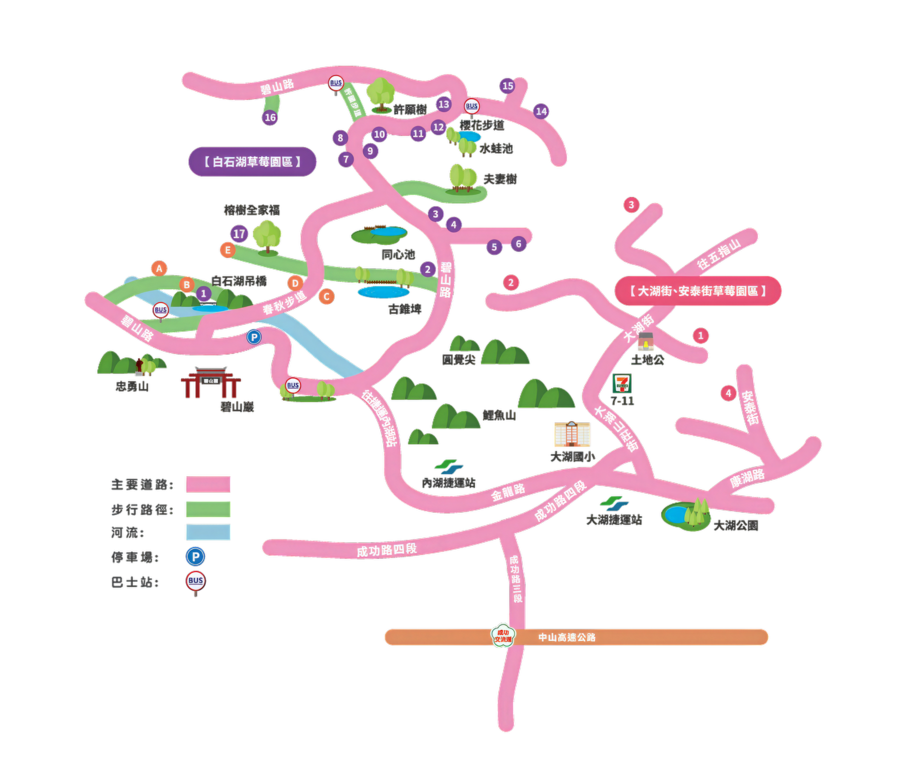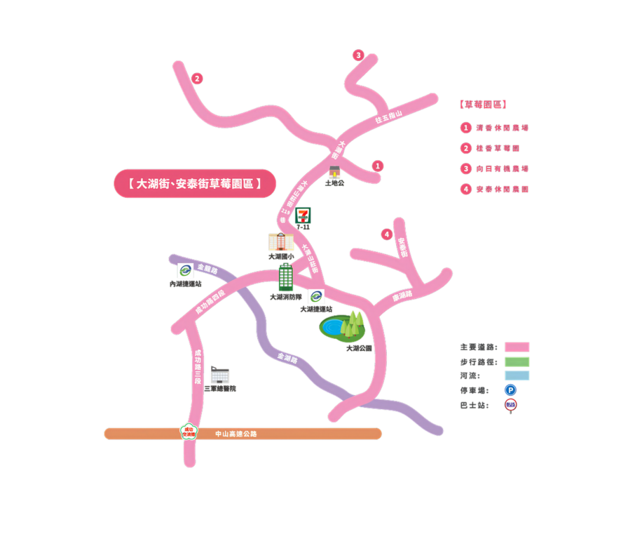 ≣ 大湖街、安泰街 草莓園區地圖