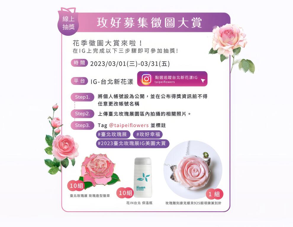 關注 臺北玫瑰展最新資訊 👉2023臺北玫瑰展官網 、臺北玫瑰園FB