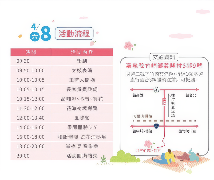 活動地點:📍 阿拉伯的粉紅村 (嘉義縣竹崎鄉義隆村8鄰9號)👉google地圖
