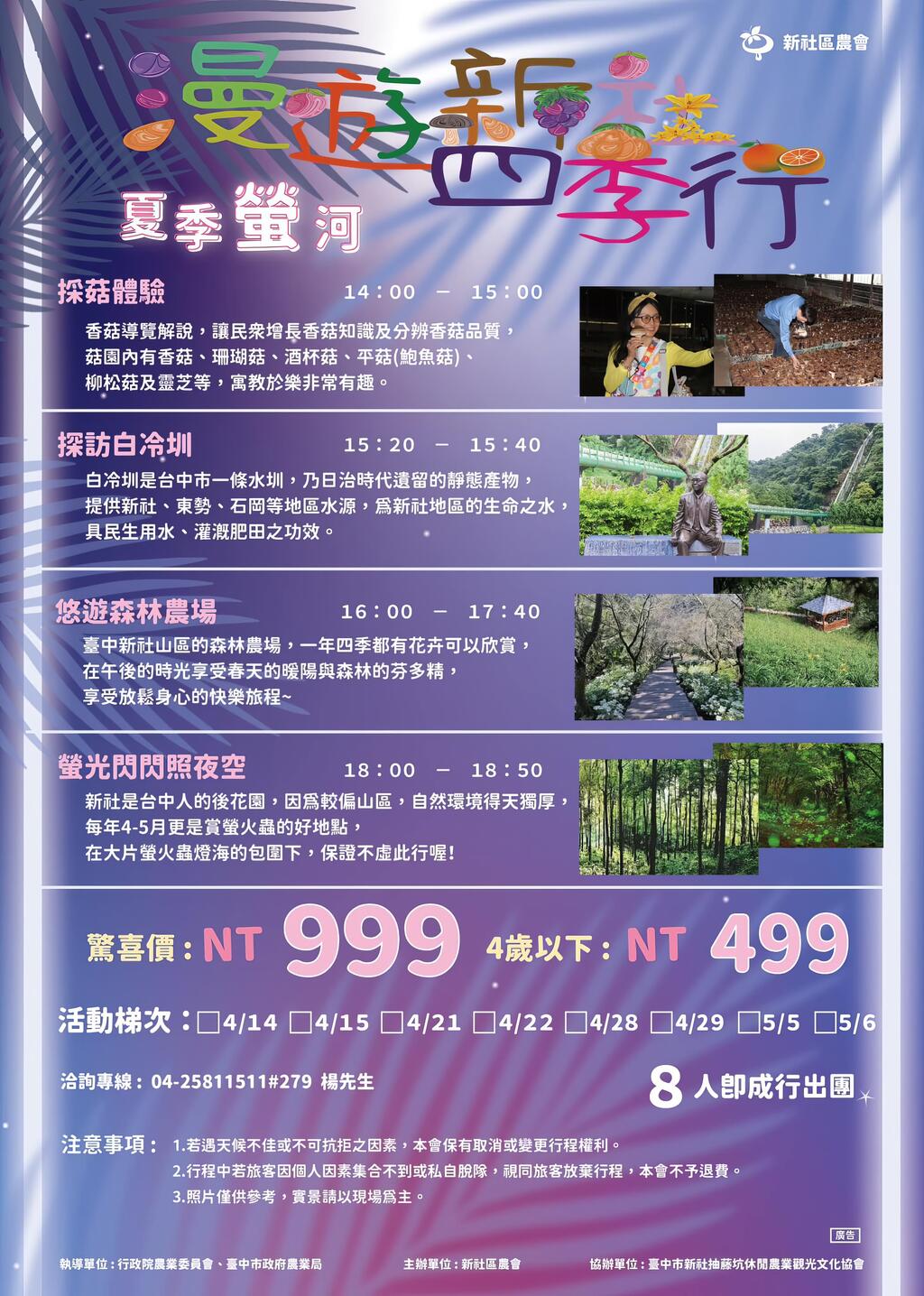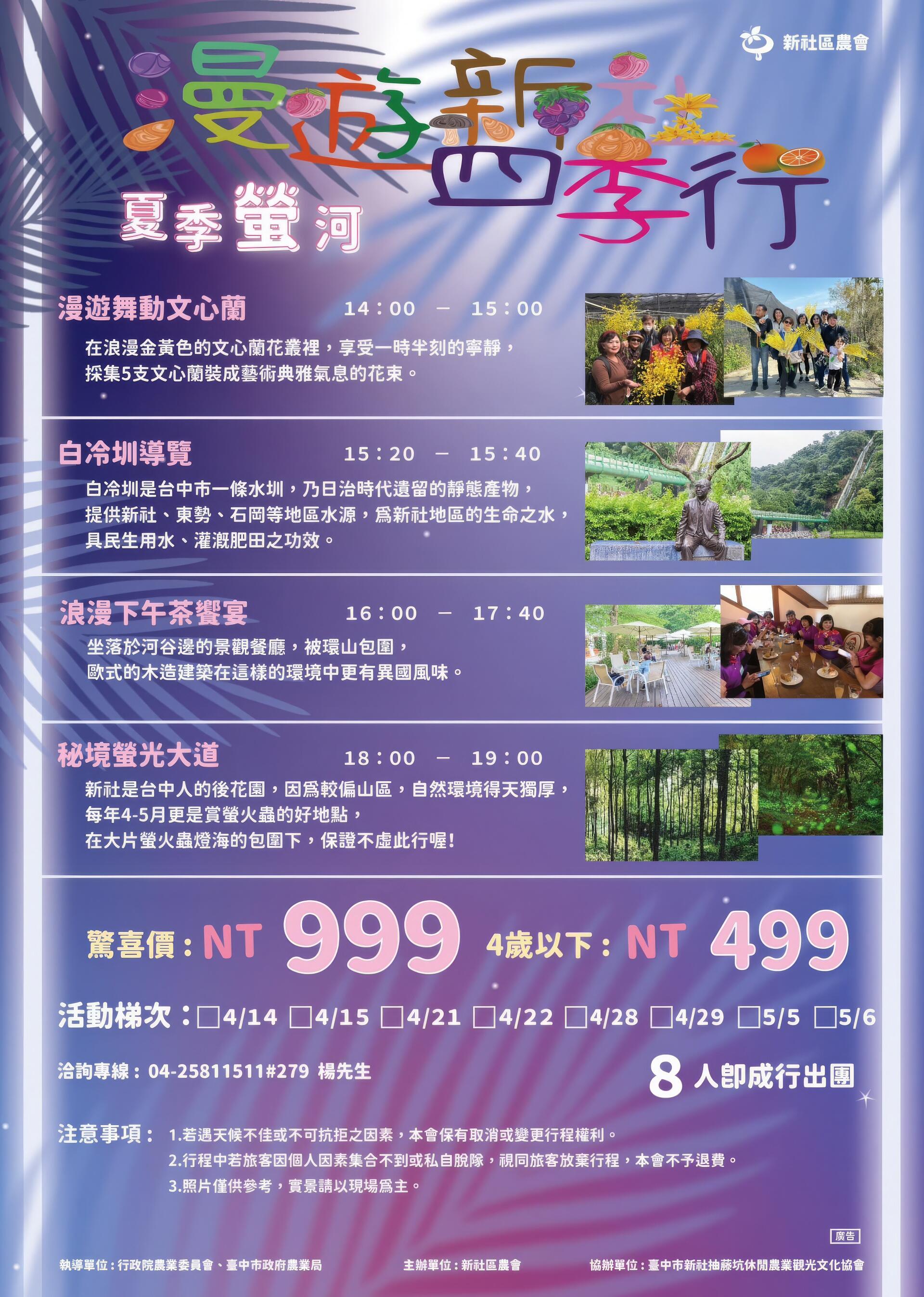 活動費用:$999元/人 ;4歲以下:$499元/人