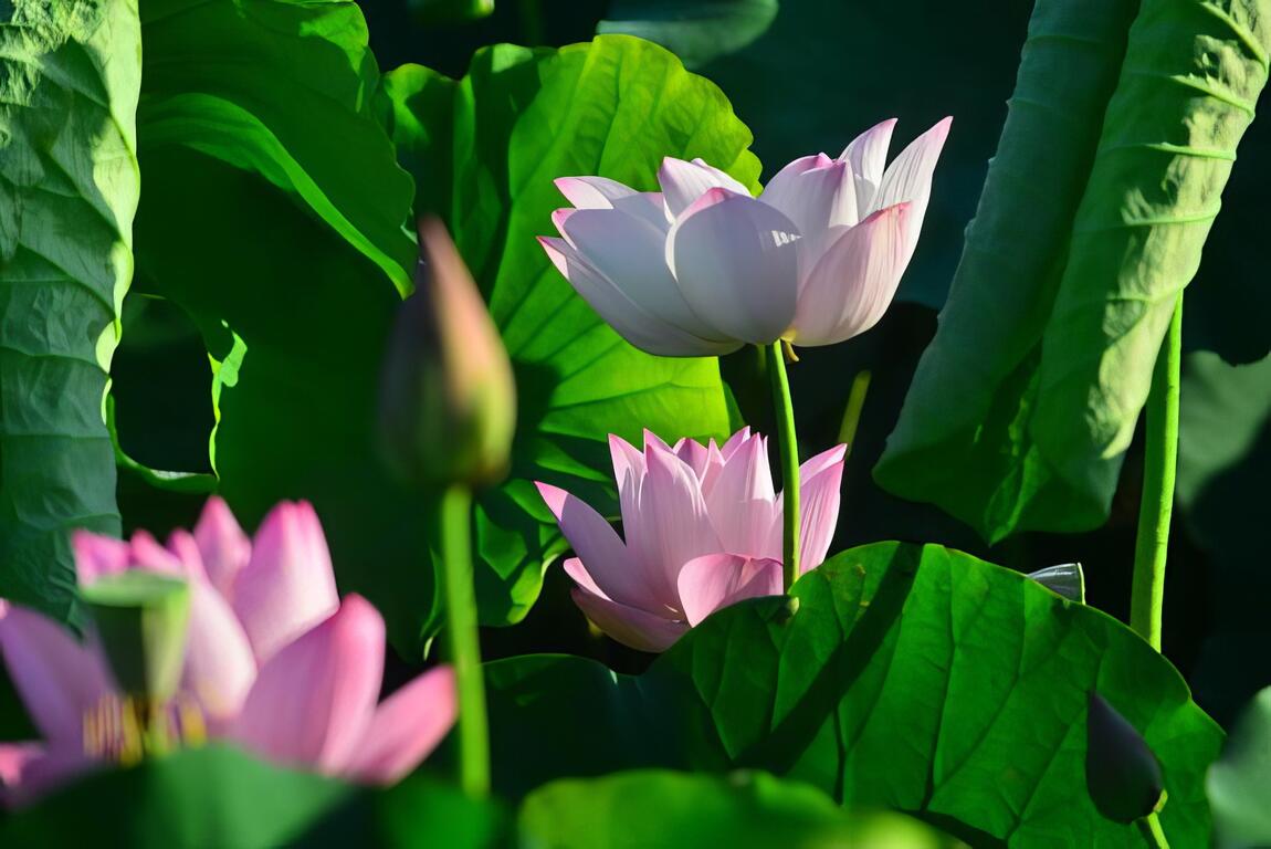 夏季是蓮花盛開的季節,粉紅花朵點綴蓮花田中,蘸著露水的蓮花,是如此的瑰麗,