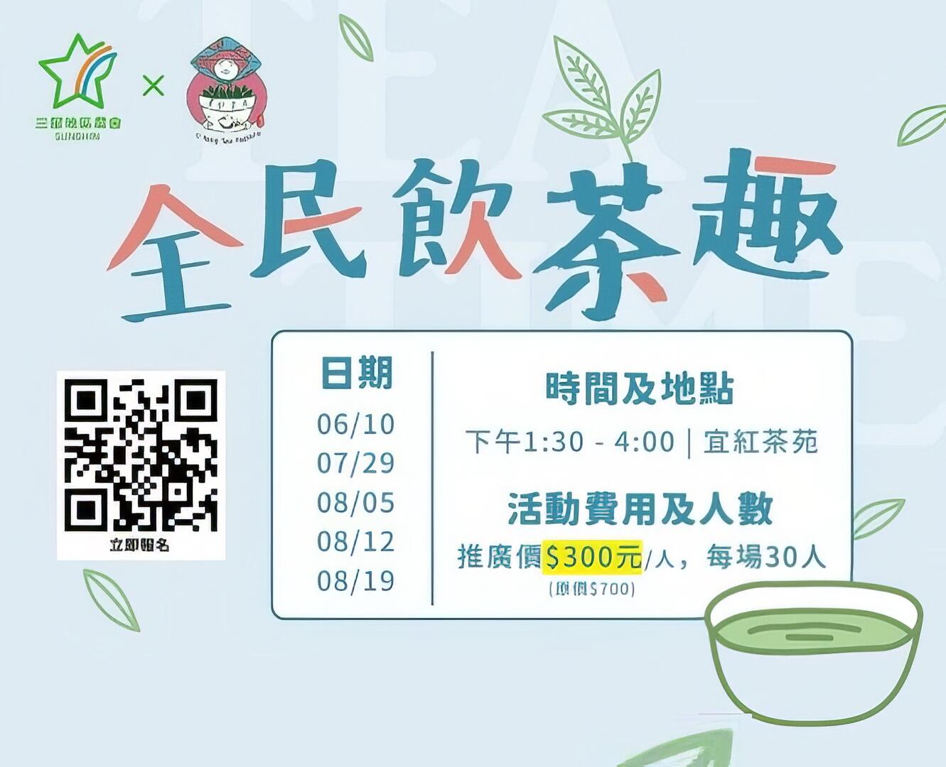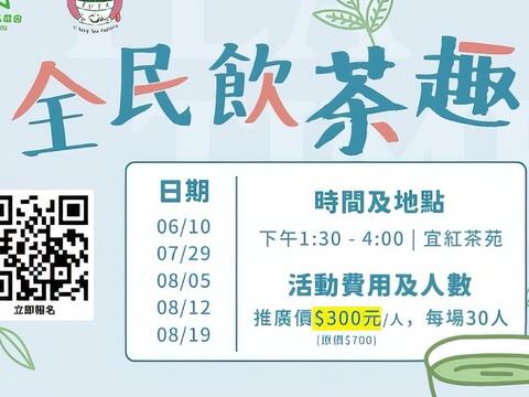 一連三個月舉辦「全民飲茶趣」將帶領大家認識宜蘭茶的特色,重點是每月都有場次唷