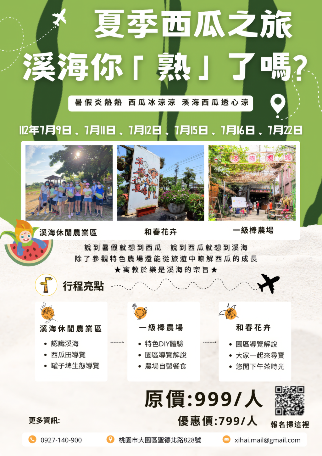 一日遊程將帶領大家進入溪海西瓜田,認識西瓜從無到有的過程,當天也會開放認養名額唷 ~