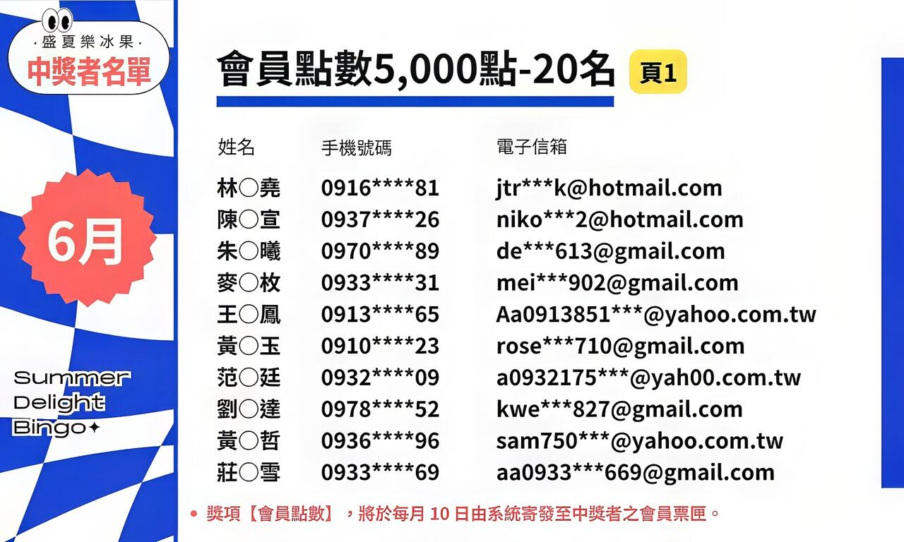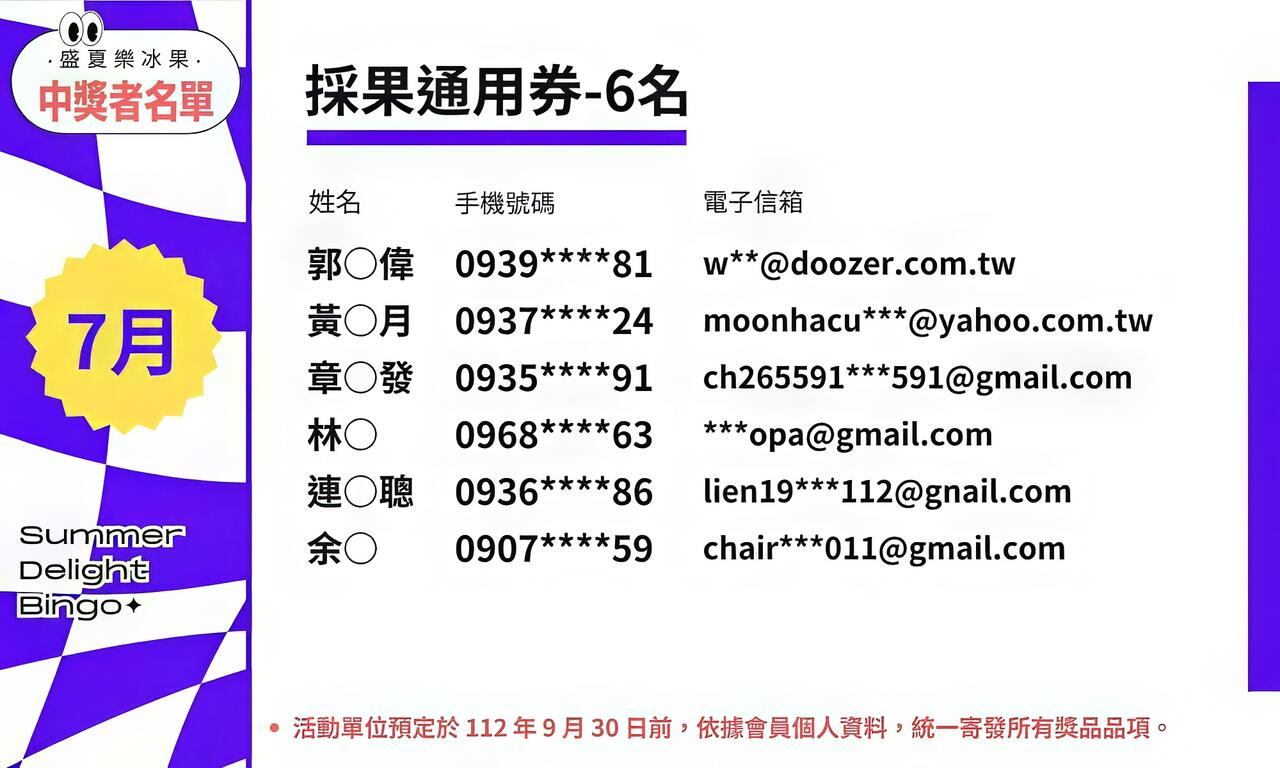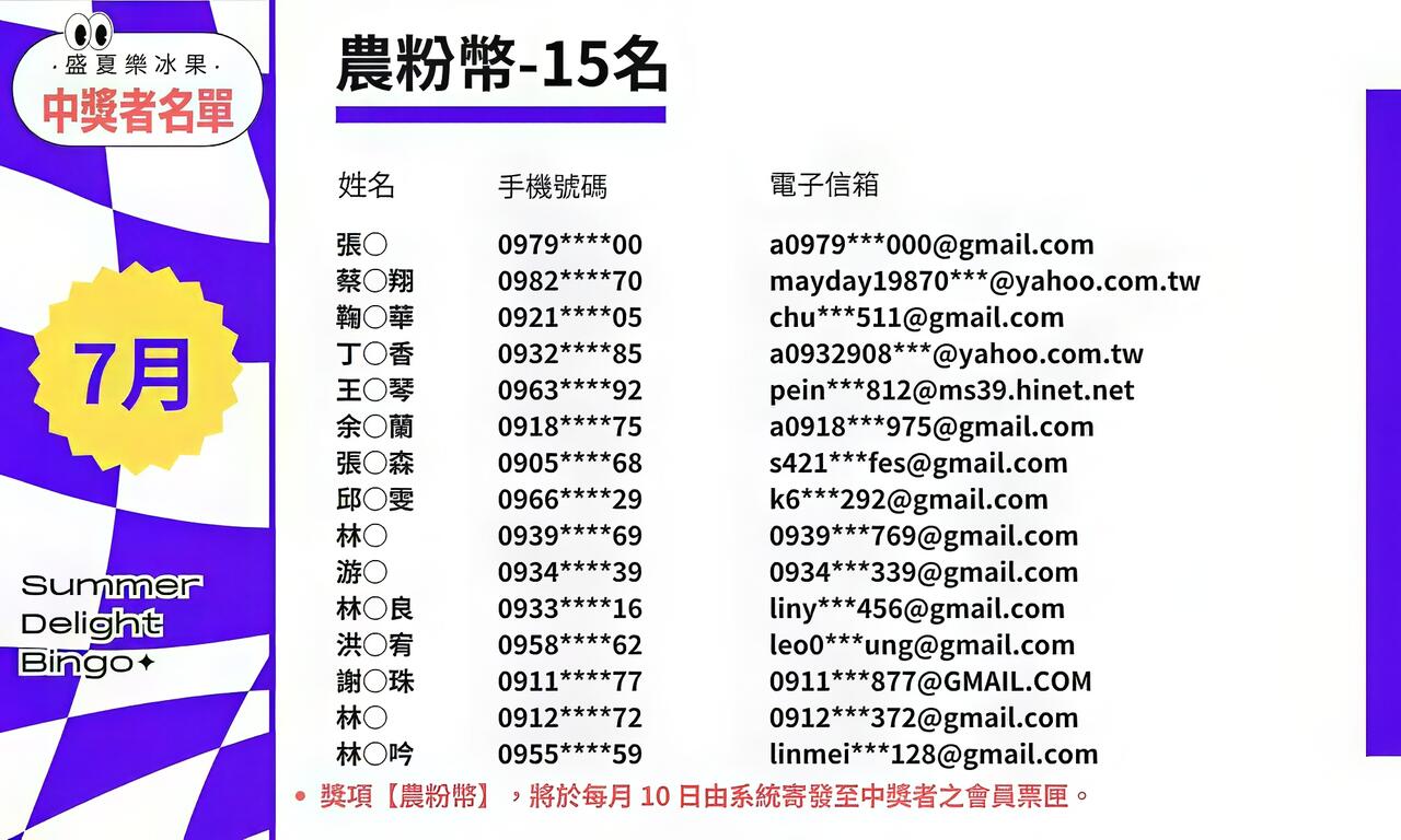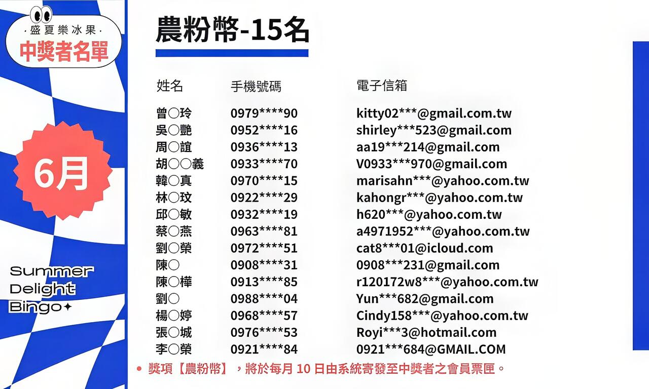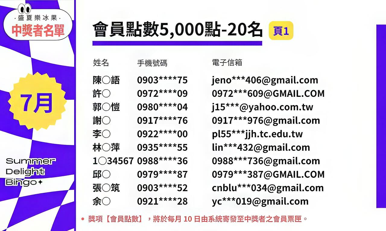 盛夏樂冰果|中獎公告 (每月10日更新)