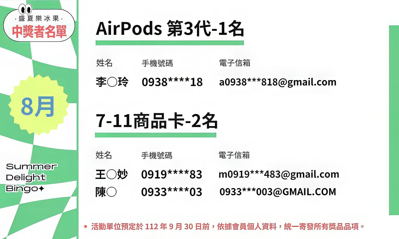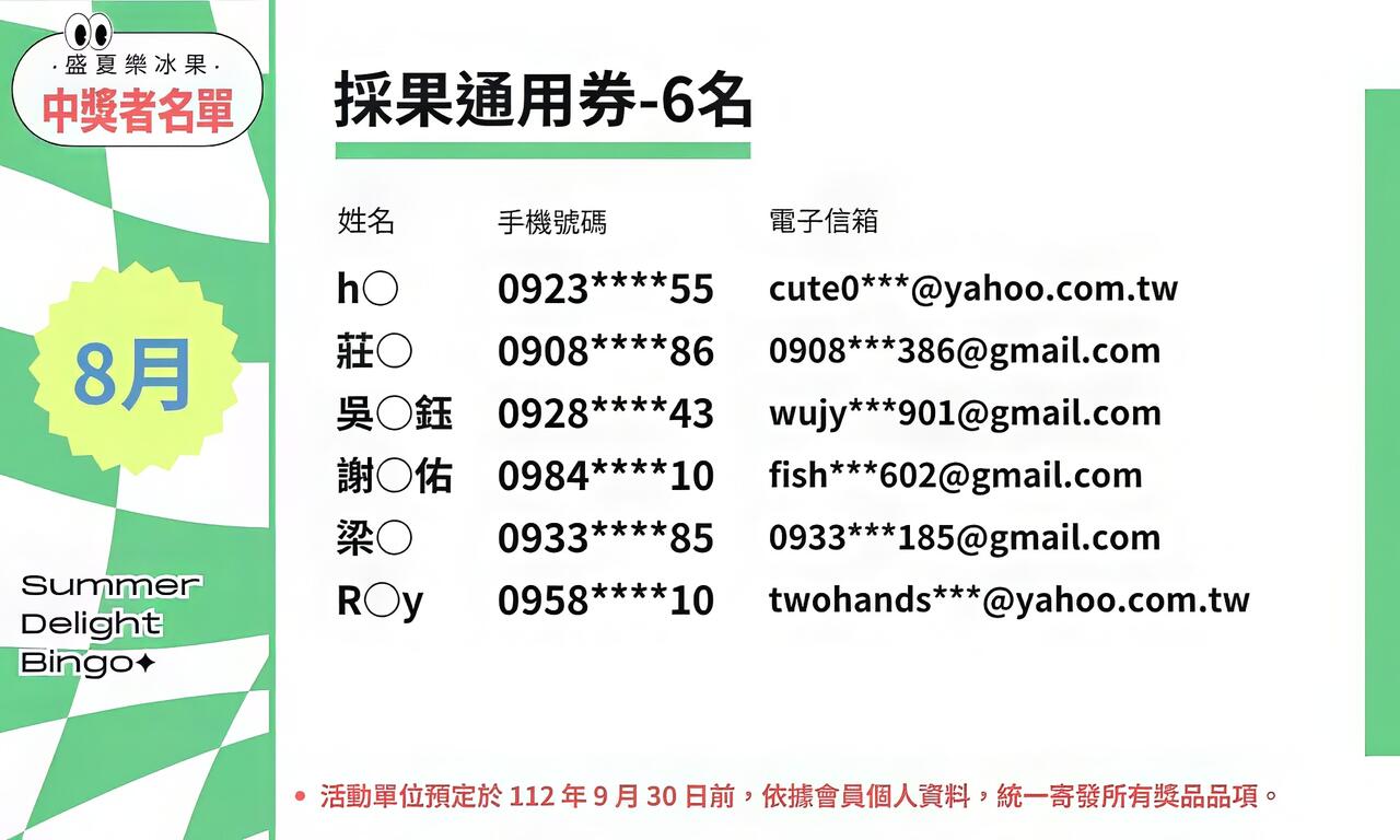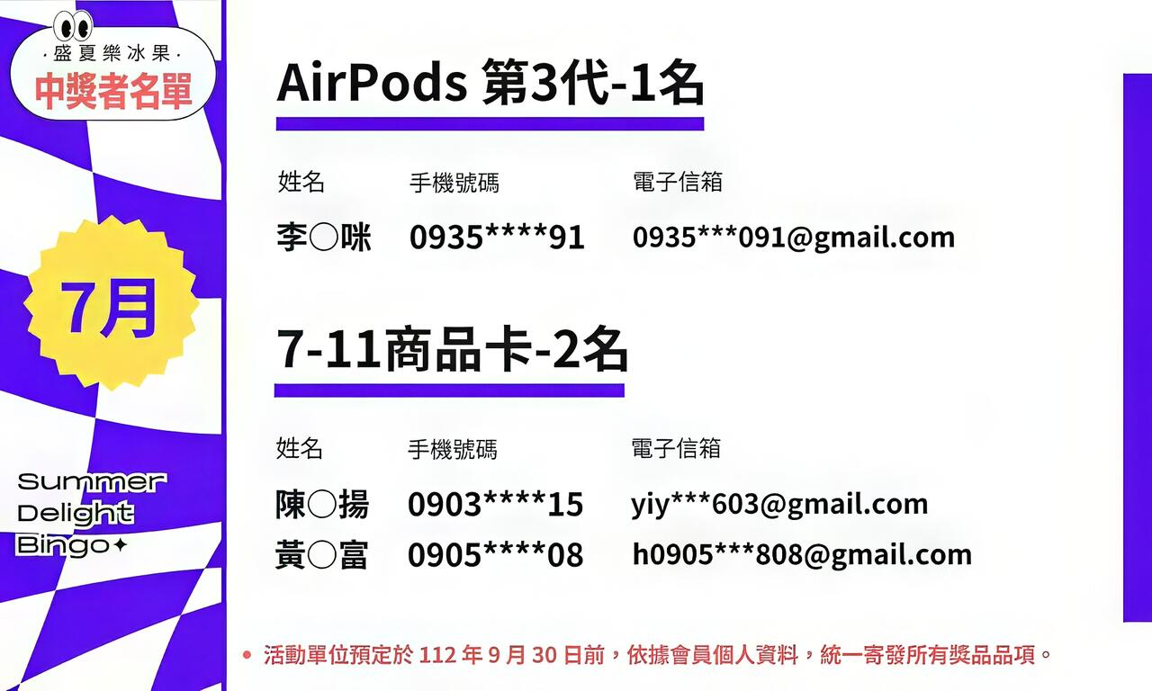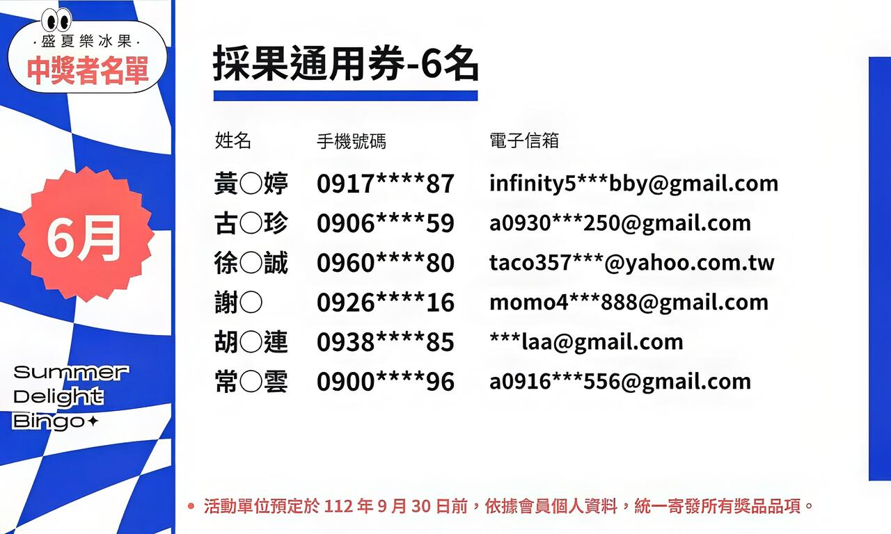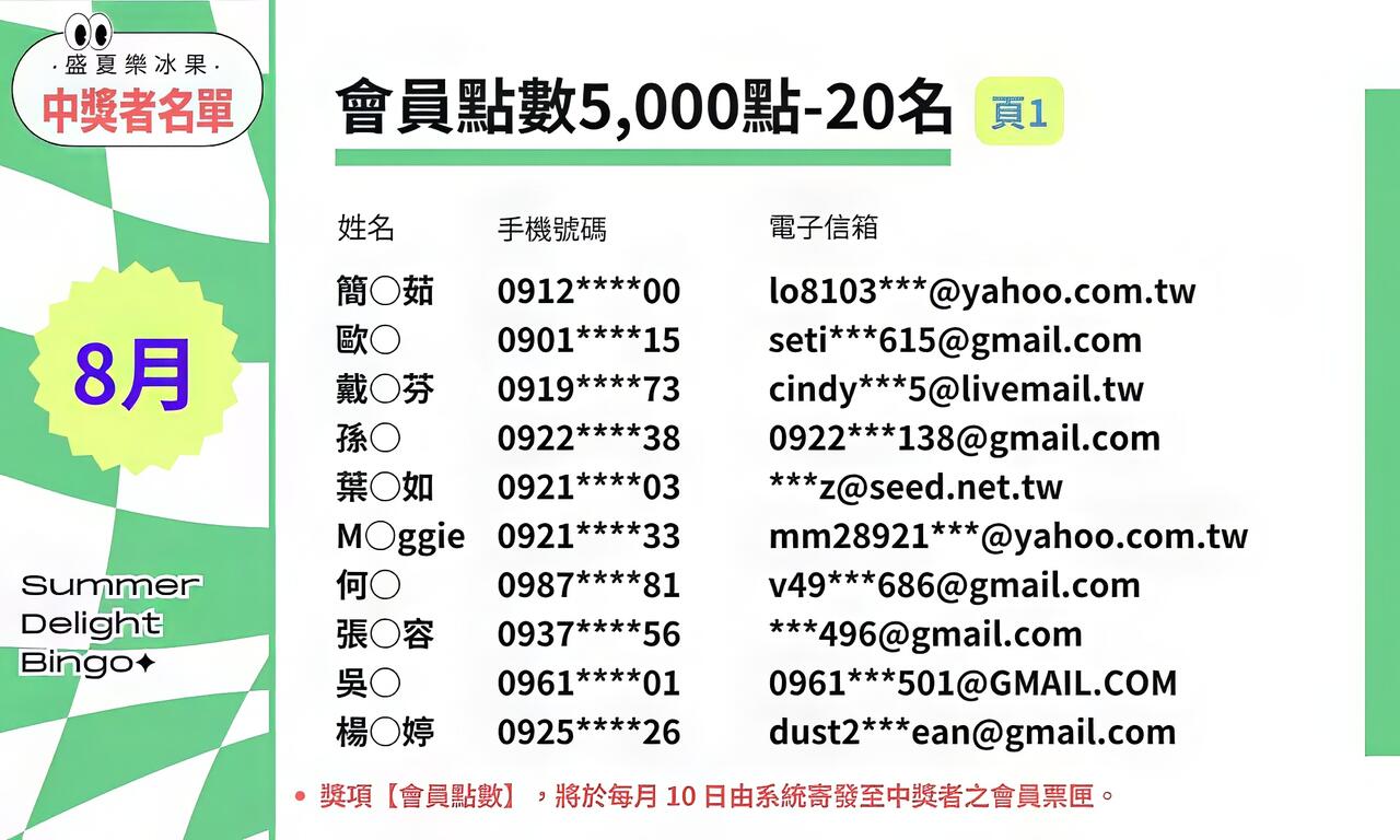 盛夏樂冰果|中獎公告 (每月10日更新)