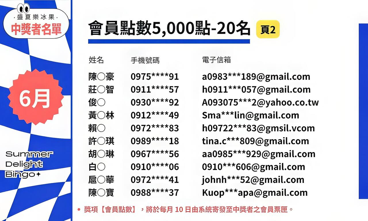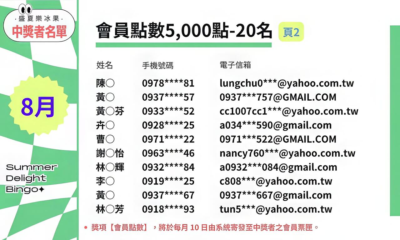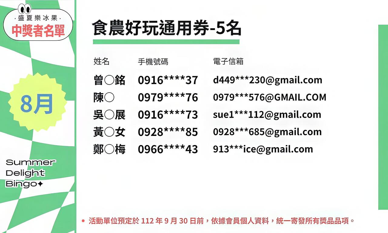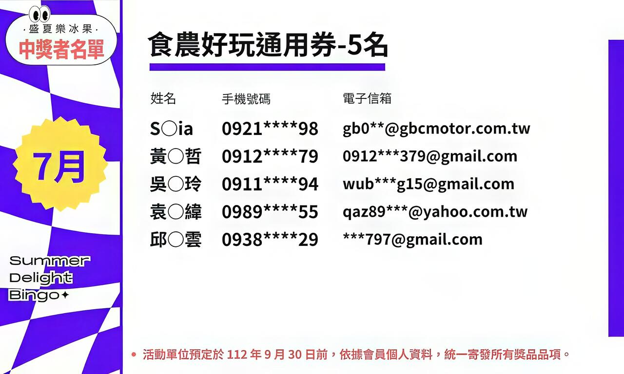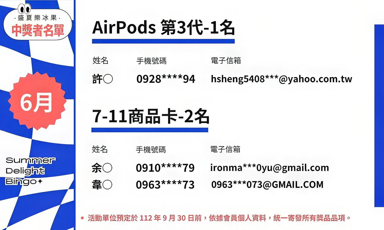 盛夏樂冰果|中獎公告 (每月10日更新)
