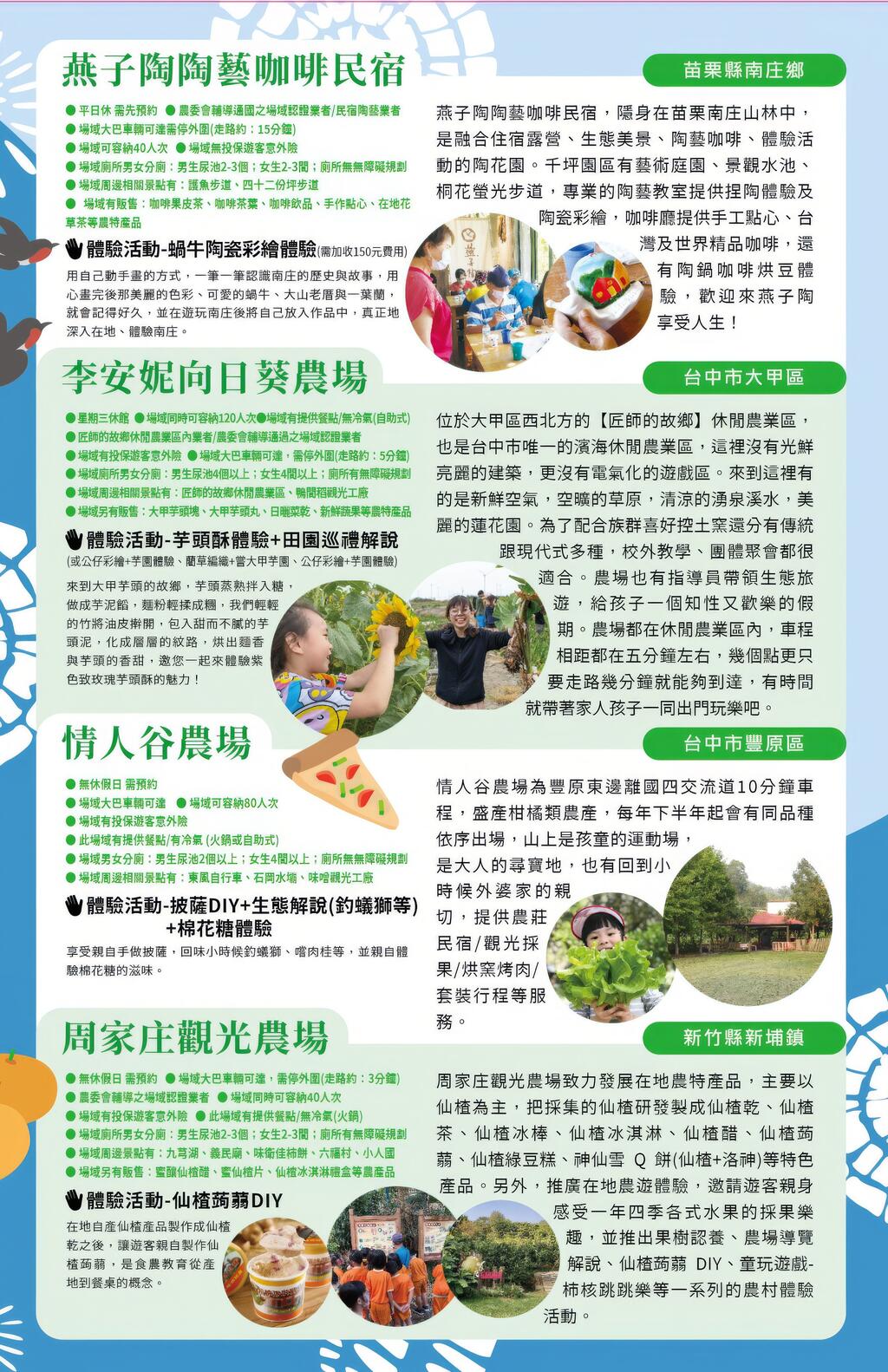 景點介紹-燕子陶陶藝咖啡民宿、李安妮向日葵農場(台中大甲區)、情人谷農場(台中豐原區)、周家庄觀光農場(新竹新埔鎮)