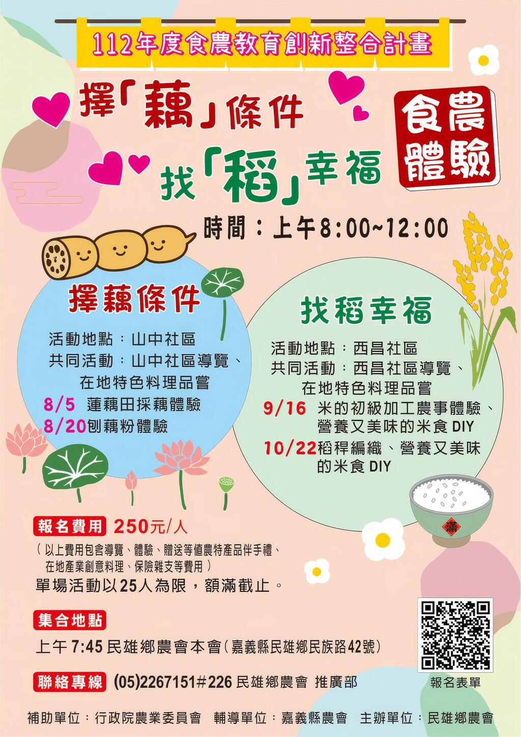 好吃又好玩的特色食農體驗來囉,一起來認識嘉義優質的蓮藕、稻米 ~