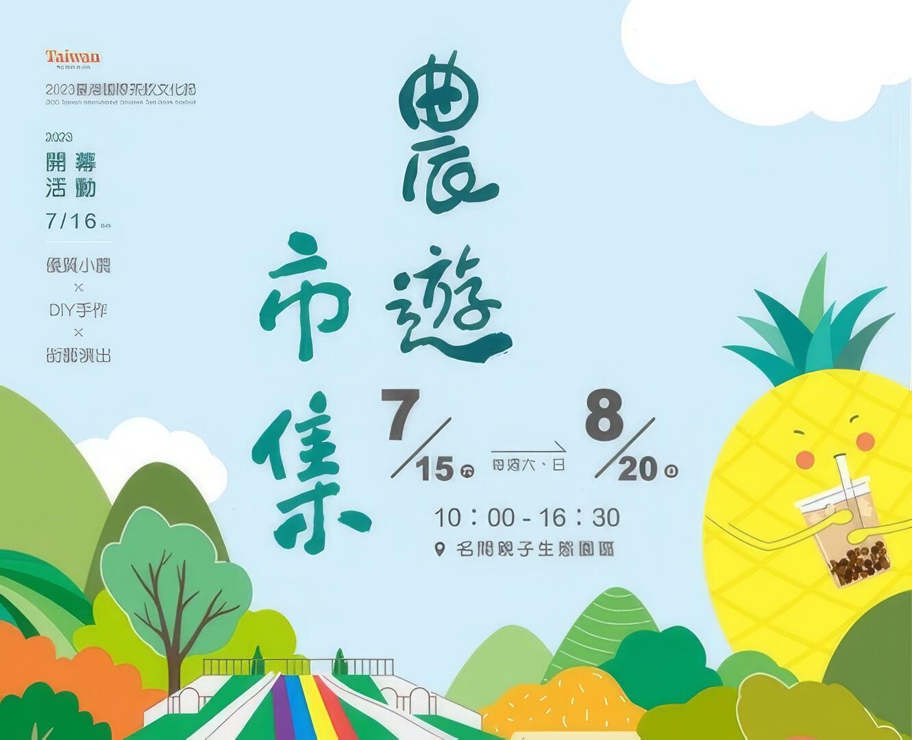 活動日期|112/07/15 (六) - 112/08/20 (日);每週六、日 活動時間|10:00 - 16:30 活動地點|📍名間親子生態園區 (南投縣名間鄉彰南路256號) 活動內容|舞團展演、接藝演出、農產促銷、DIY手作體驗、有獎徵答等系列活動。