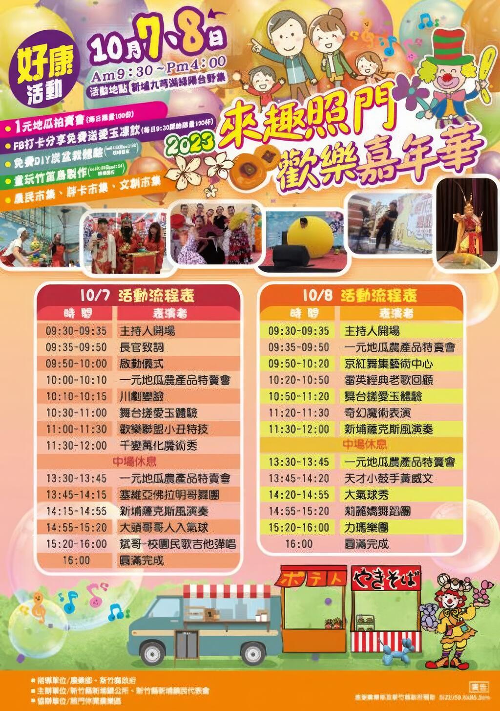 今年新埔不一樣哦,意象為多采多姿10月7.8日舉辦 2023來趣照門歡樂嘉年華主題活動!