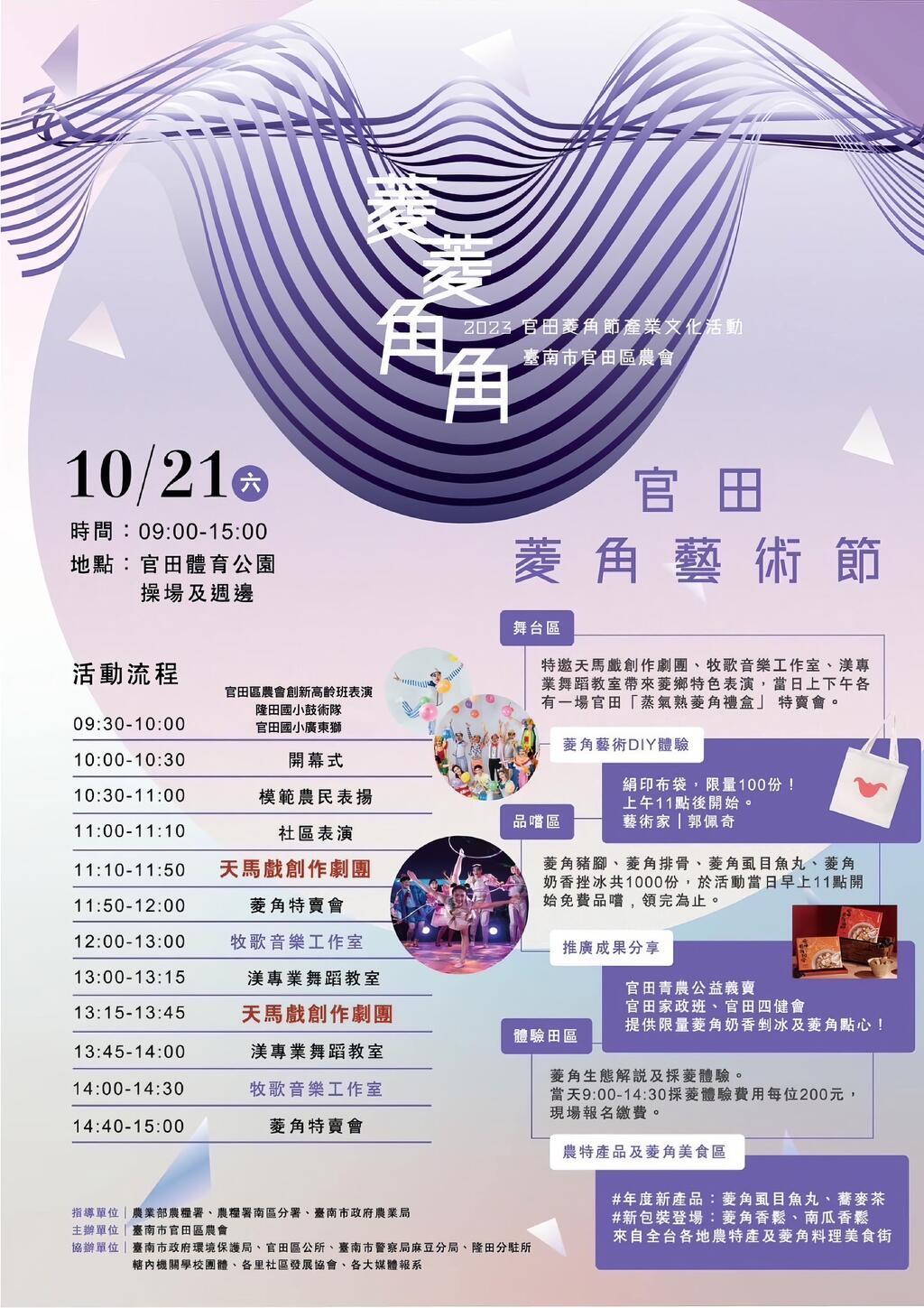 09:30-10:00 官田區農會創新高齡班表演、隆田國小鼓術隊、官田國小廣東獅
