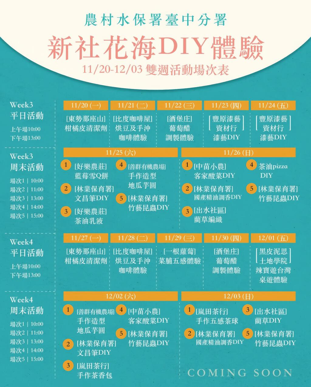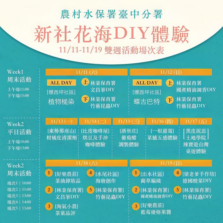 2023新社花海暨農村繽菓室開幕 『雙十一』 我想來場 "農村繽菓室" 復古趴~ 當日有限量免費冰淇淋兌換、人在江湖走,冰淇淋兌換卷要有 現場有來自台中及苗栗在地優質農村產品及為期23天,天天都有DIY體驗 「農村繽菓室 呷冰5意su 」 精彩內容請鎖定農村水保署臺中分署臉書