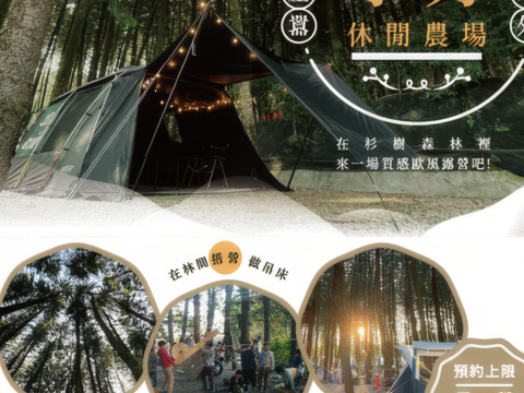 仰望參天的南洋杉木森林,在林間搭營、嬉鬧 伴著林間清爽的涼風與蟲鳴鳥叫,好輕鬆 好自在 來國姓山谷間的愜意旅行,享受一場質感歐風露營吧!