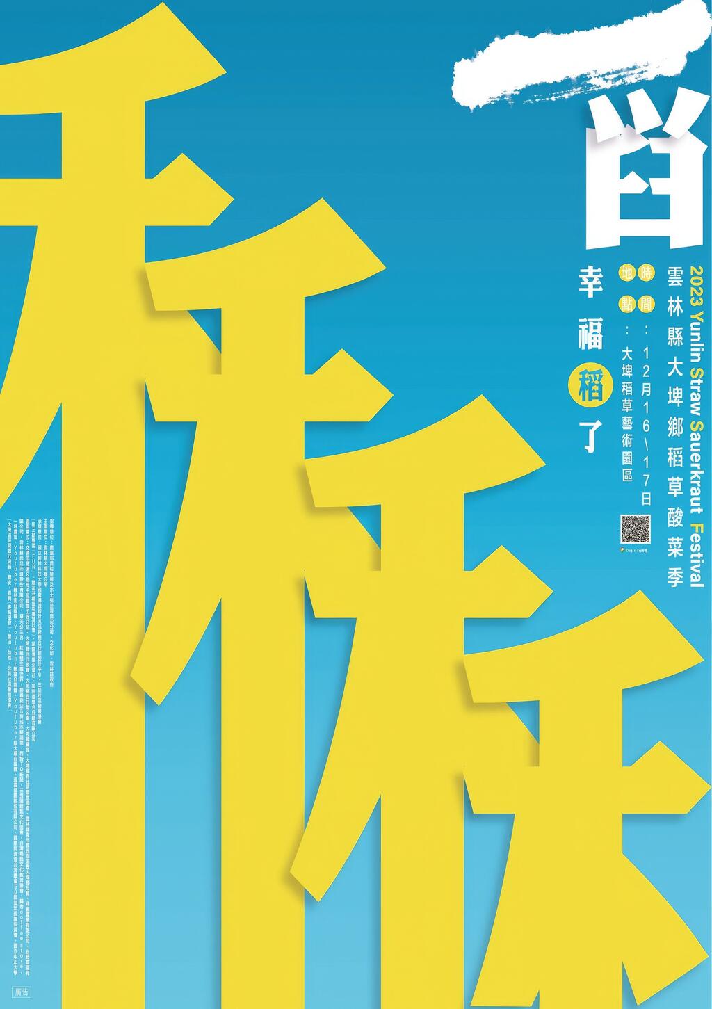 《2023雲林縣大埤鄉稻草酸菜季》歷經三年疫情,今年我們以「幸福稻了」為主軸,主視覺設計以「陽光注入金色稻浪」概念出發,讓大眾置身於金色大地的懷抱。從「禾」開始,傳遞每位大埤鄉民如同每一支稻穗,創造與大地幸福共榮的意念。