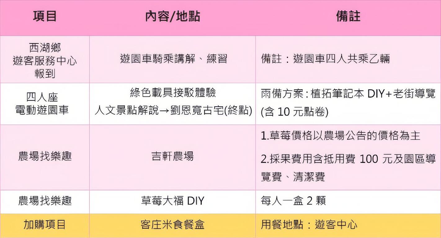 🍓集合地點|西湖鄉遊客服務中心(地址:苗栗縣西湖鄉三湖村1鄰店仔街4-1號1樓)