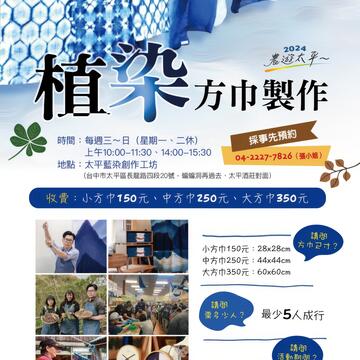 ⏺︎3月16日(六)至4月13日(六)(農遊太平-枇杷果樹認養及採果趣、藍莓採果趣、植物染方巾製作,為預約報名制)
