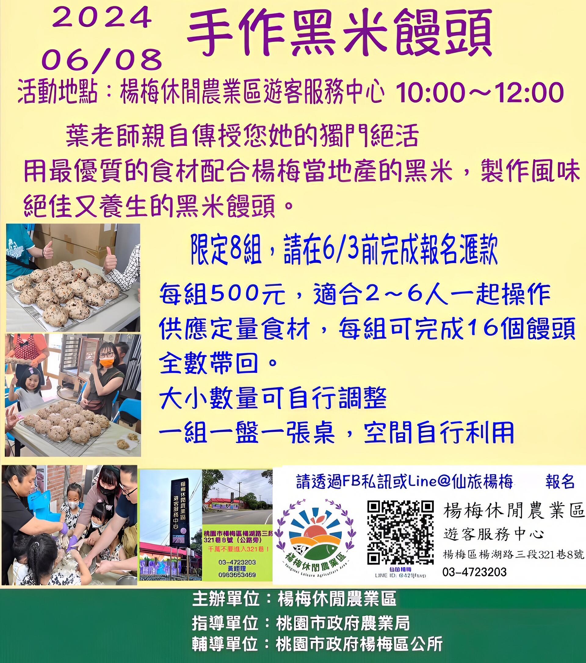 ✨活動費用:每組500元(16顆黑米饅頭,適合2-6人一同操作)
