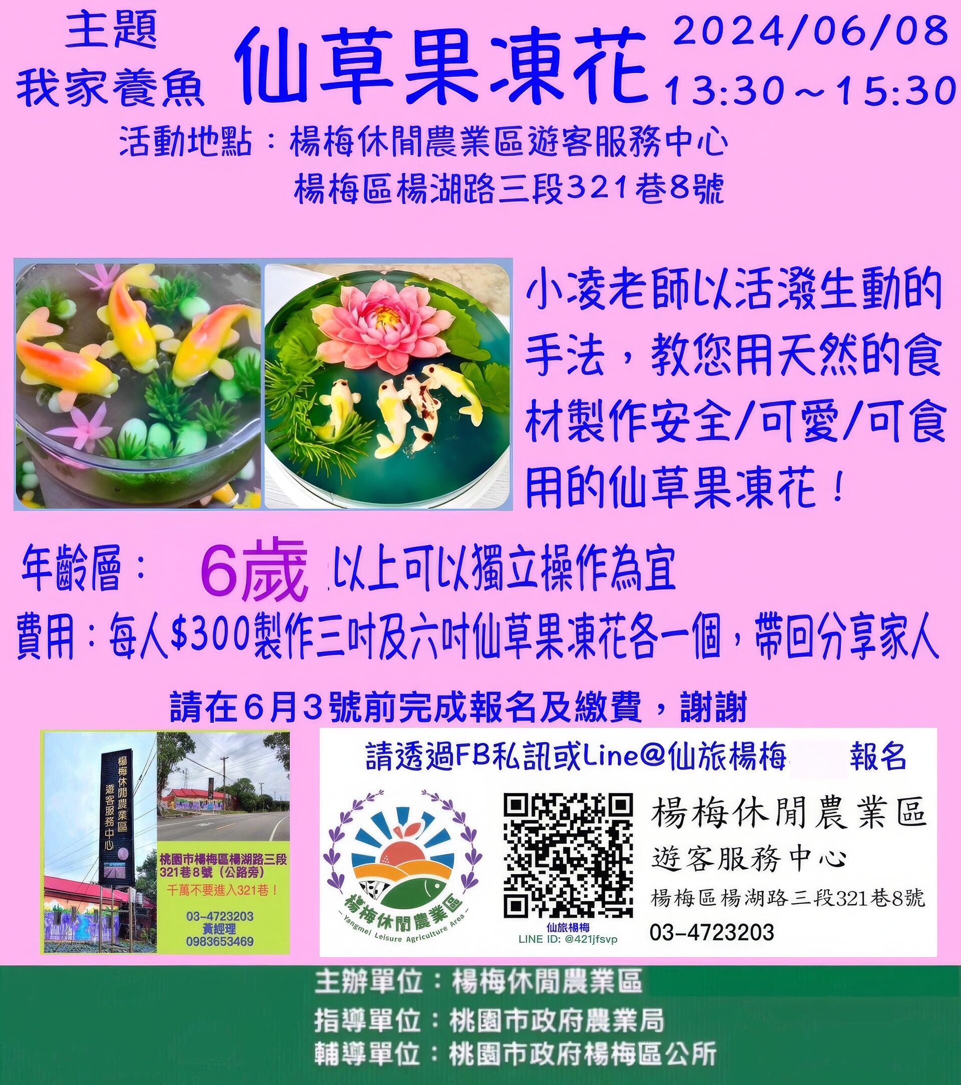 🐠活動地點:楊梅休閒農業區遊客服務中心(桃園市楊梅區楊湖路三段321巷8號)