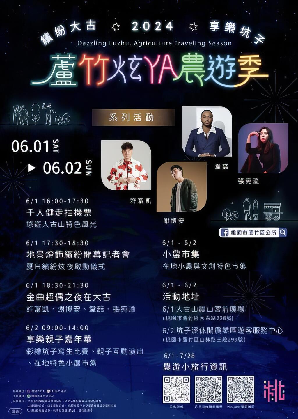 ✨6/1--超級偶像之夜:許富凱、謝博安、韋喆、張宛渝等偶像陪遊客一同欣賞繽紛燈飾為農遊季揭開序幕