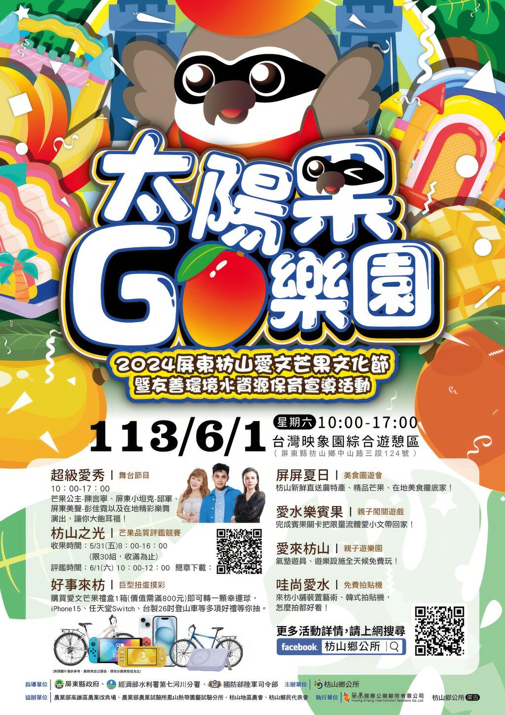 ▪︎現場購買愛文芒果禮盒1箱(價值需滿800元),即可轉一顆幸運球,IPHONE15、任天堂Switch、26吋登山車超多豐富好禮,買愈多中獎機會愈高!