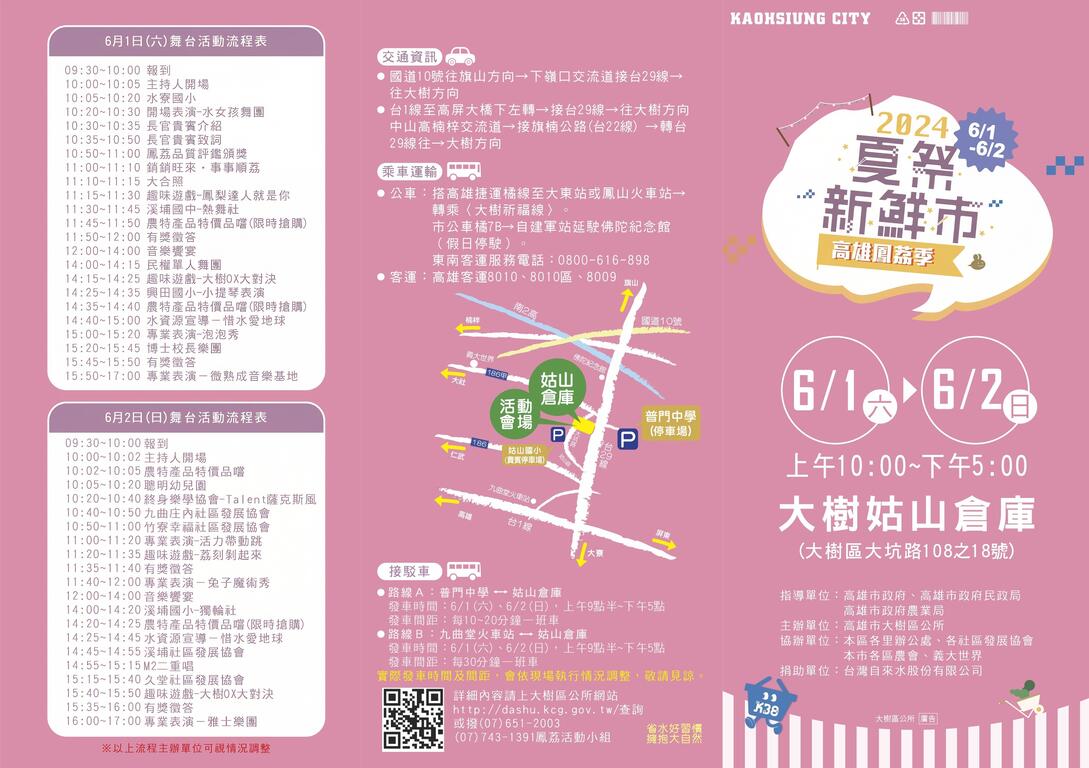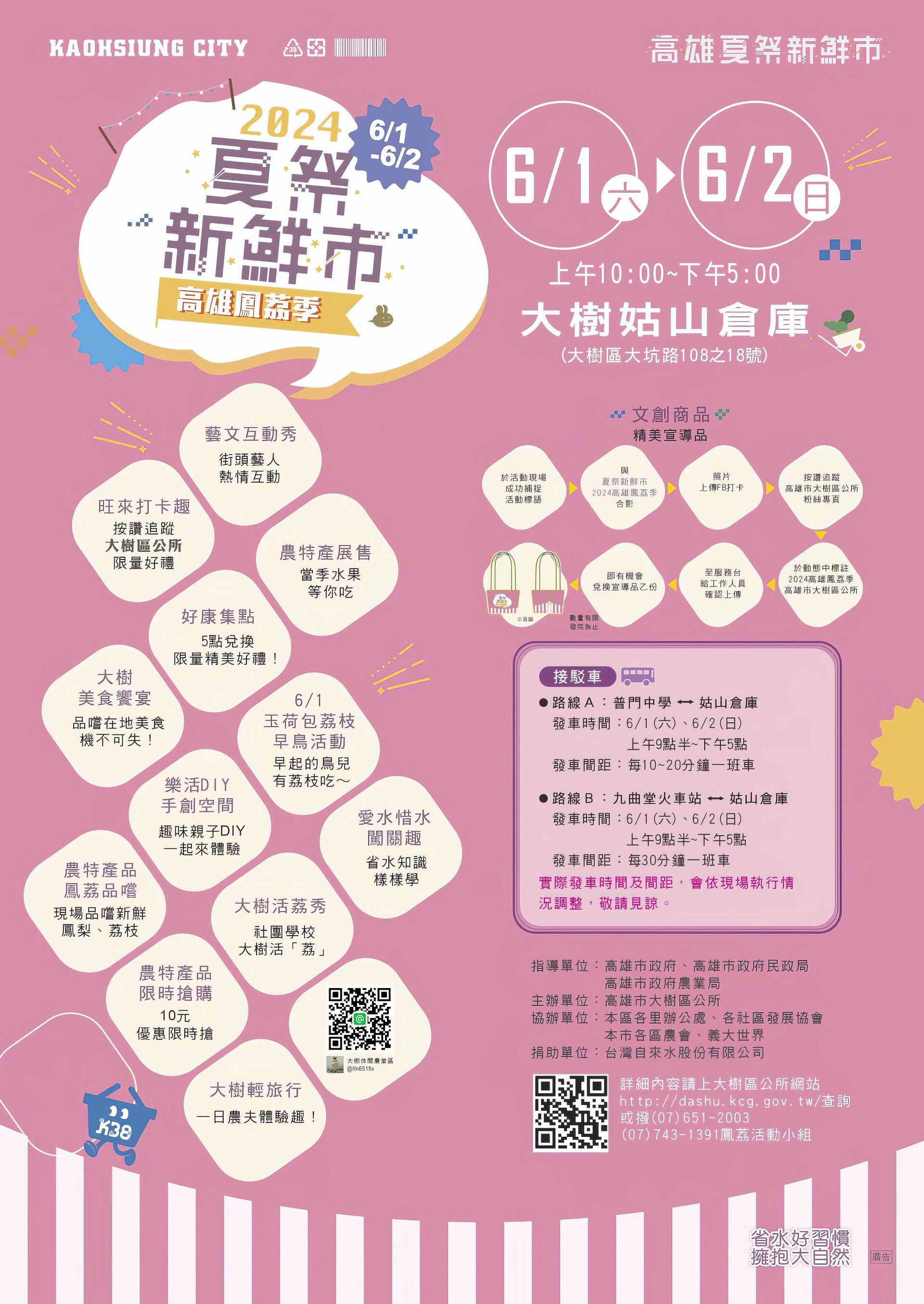 接駁時間: 113年6月1日(星期六)、113年6月2日(星期日),上午9點半~下午5點