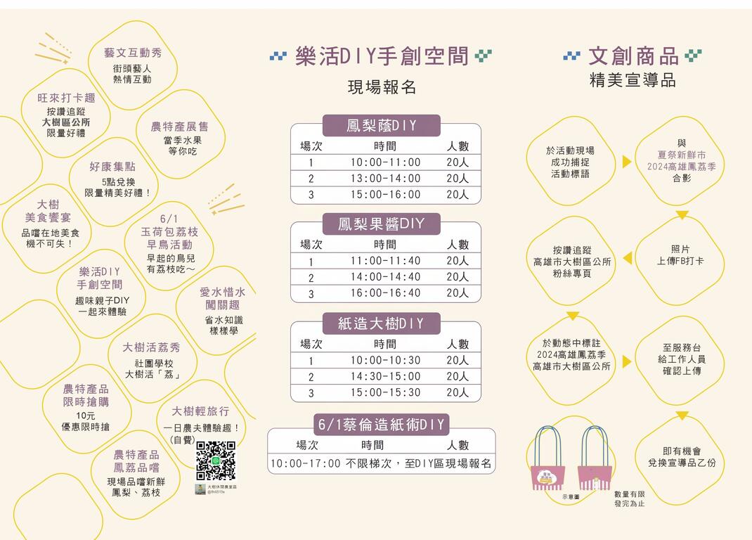 美味鳳梨蔭DIY、鳳梨果醬DIY、蔡倫造紙術、紙造大樹DIY