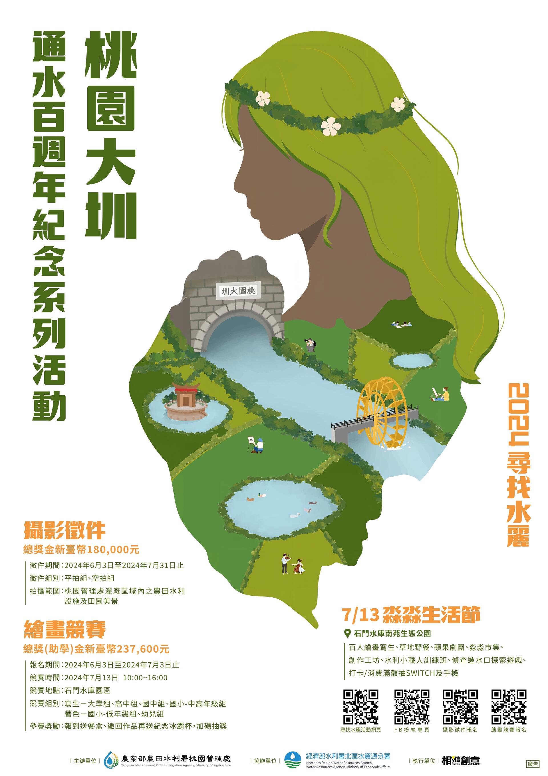 今年最Chill的盛夏派對!為歡慶桃園大圳通水百週年,農業部農田水利署桃園管理處特別舉辦「淼淼生活節」,現場規劃草地野餐派對、水澤植苗儀式、淼淼市集、創作工坊、水利小職人訓練班、偵查進水口遊戲等體驗,同時還有藝文表演、歡慶百週年抽獎等好康活動!