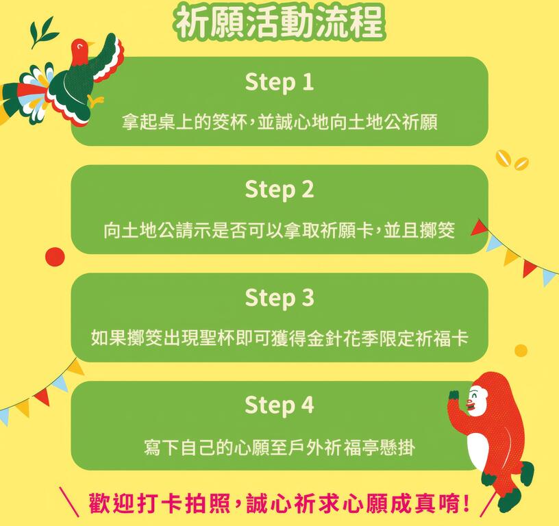 有興趣的朋友們可至土地公廟擲爻,如成功者可領取祈福卡進行祈福,希望無論是為自己祈福或為花蓮進行祈福,都能給大家一份好運!