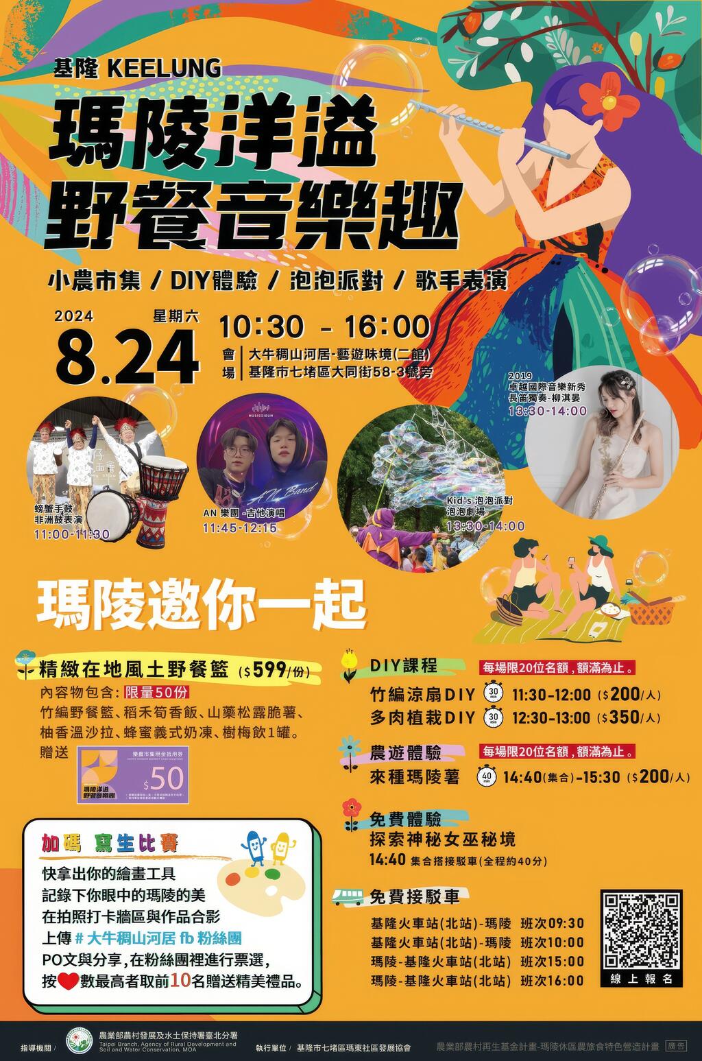 抓緊暑假的尾聲,邀請您攜家人與朋友享受戶外野餐的最佳時光!在夏日的陽光與大自然中,來參加我們的「瑪陵野餐音樂趣」活動,一同度過一個充滿音樂、美食和歡樂的美好時光。