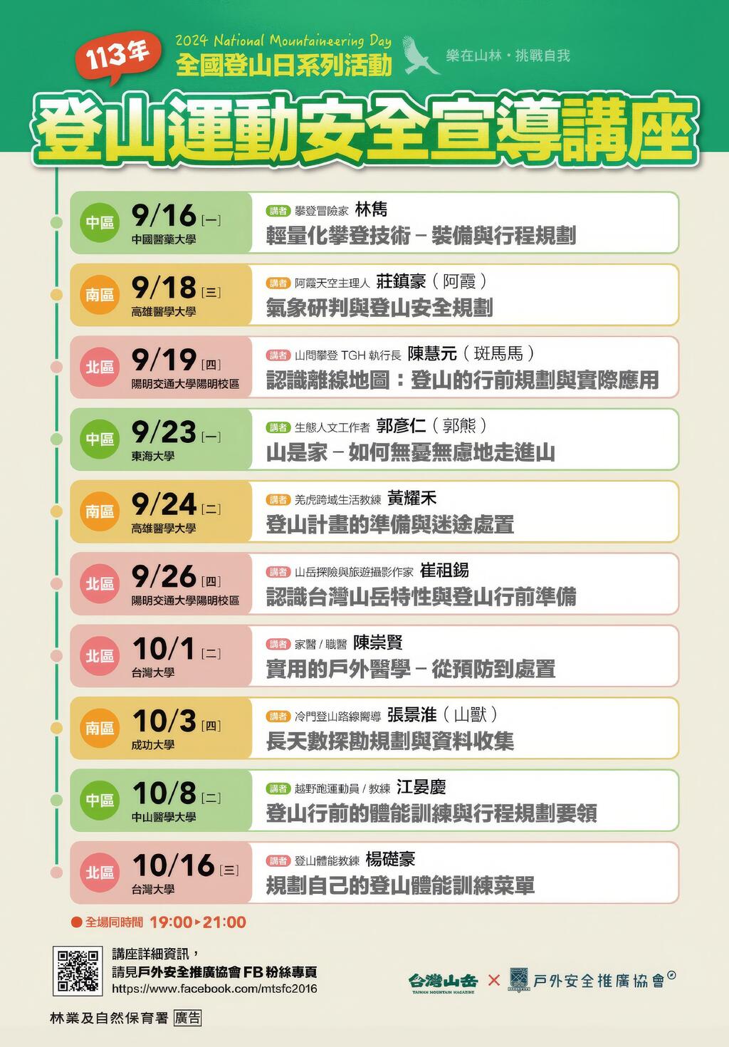 10/8(二)登山行前的體能訓練與行程規劃要領|江晏慶 越野跑運動員/教練