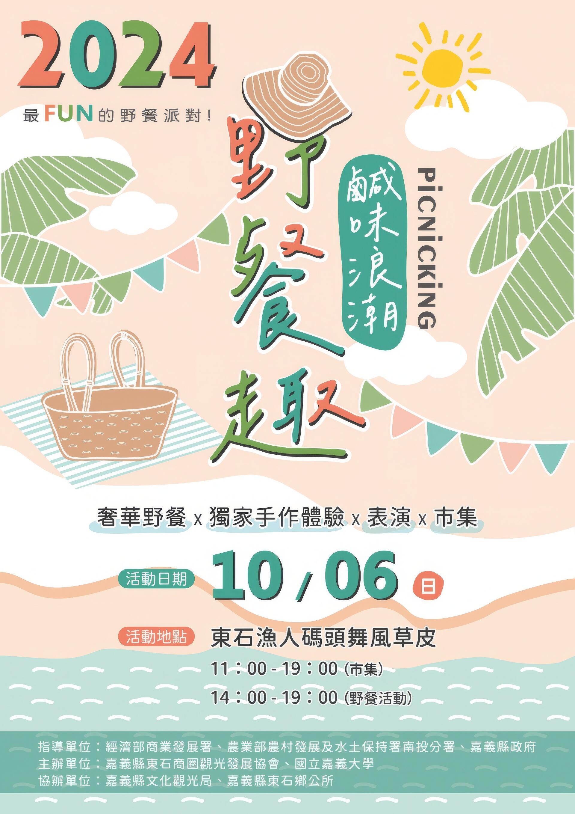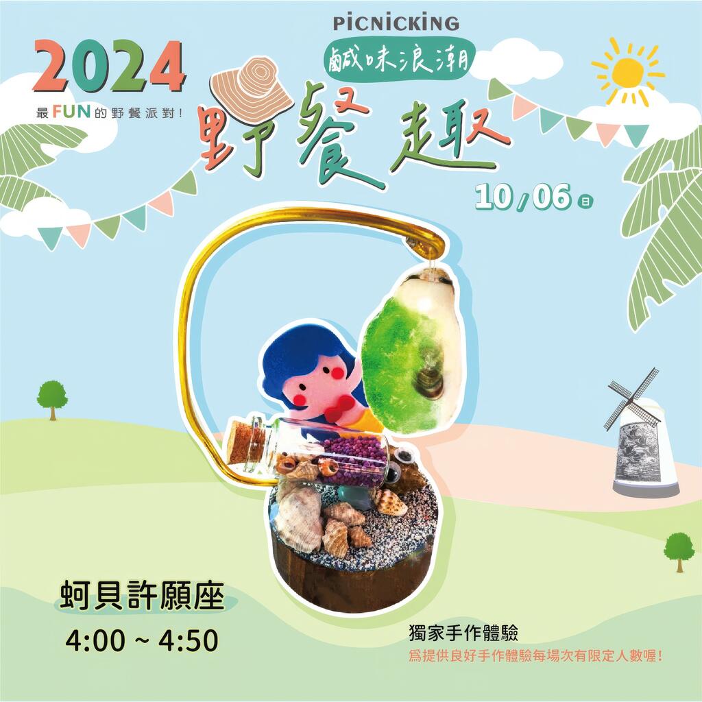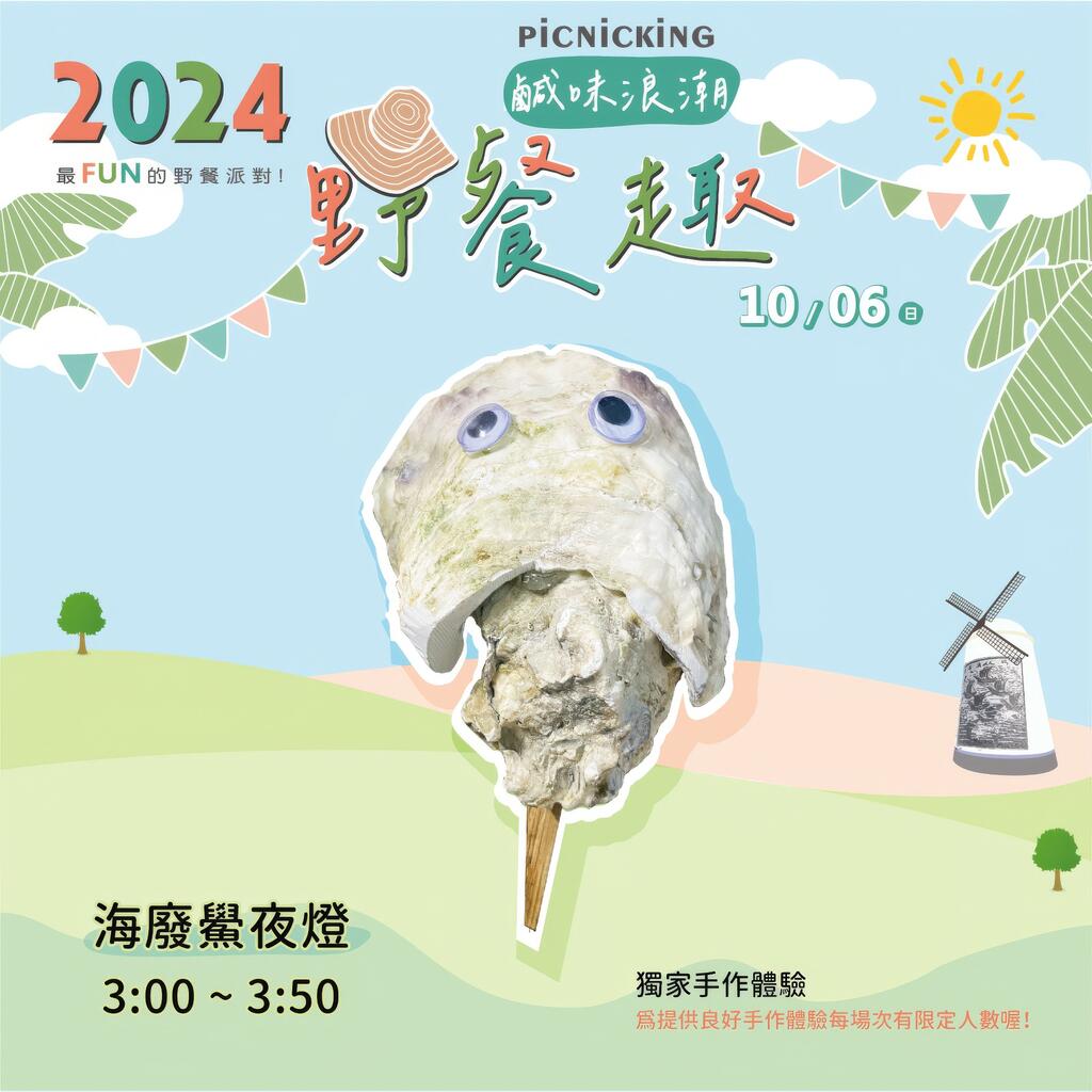 活動費用:每組$2800元--包含公共意外險、野餐墊、陽傘、鹹味浪潮野餐盒(台灣鱸魚堡、鮮蚵堡、東石福袋(蝦、花枝)、生態養殖白蝦、隱藏食材)、手作體驗DIY、兒童故事劇場、魔術表演