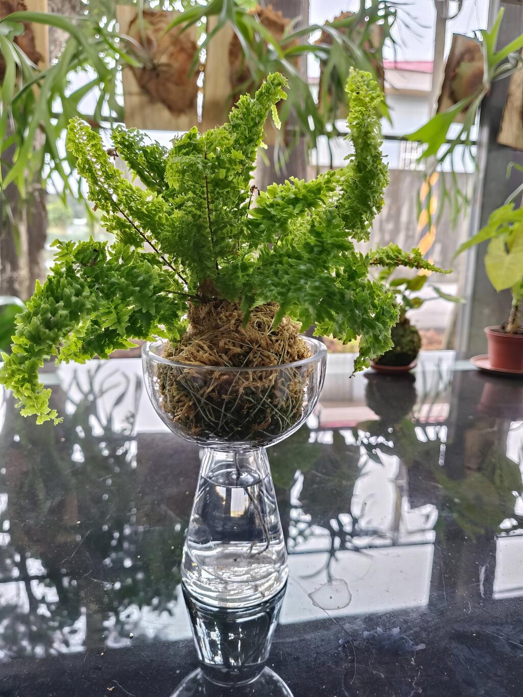 Step 3. 將包覆水草的蘭花,一同放入盆中壓緊。