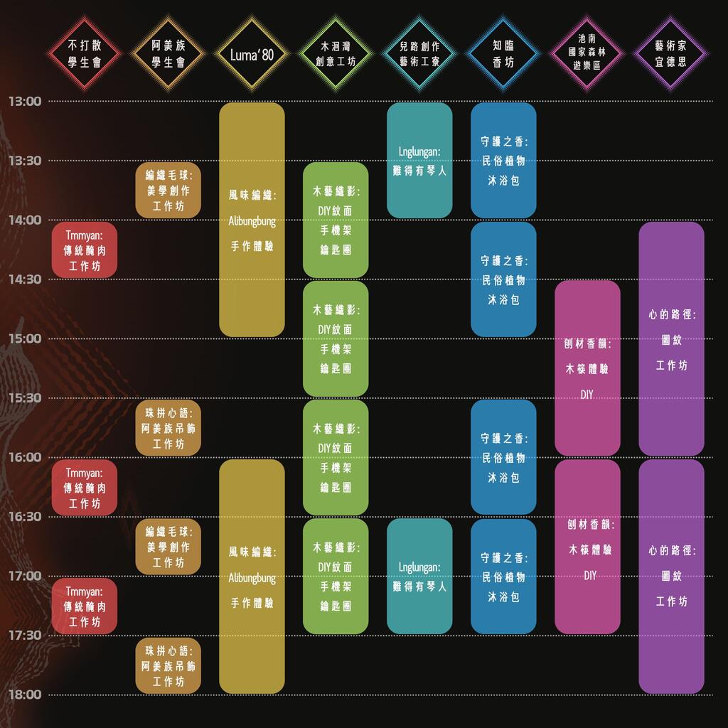 今年特別新增 ⭔文化工寮⭔ 展區,邀請多個原住民族文化傳承與復振青年組織參加,透過攤位分享和文化體驗工作坊,深入介紹各族文化與現今部落面臨的議題與挑戰。在文化工寮你可以 ⋯⋯