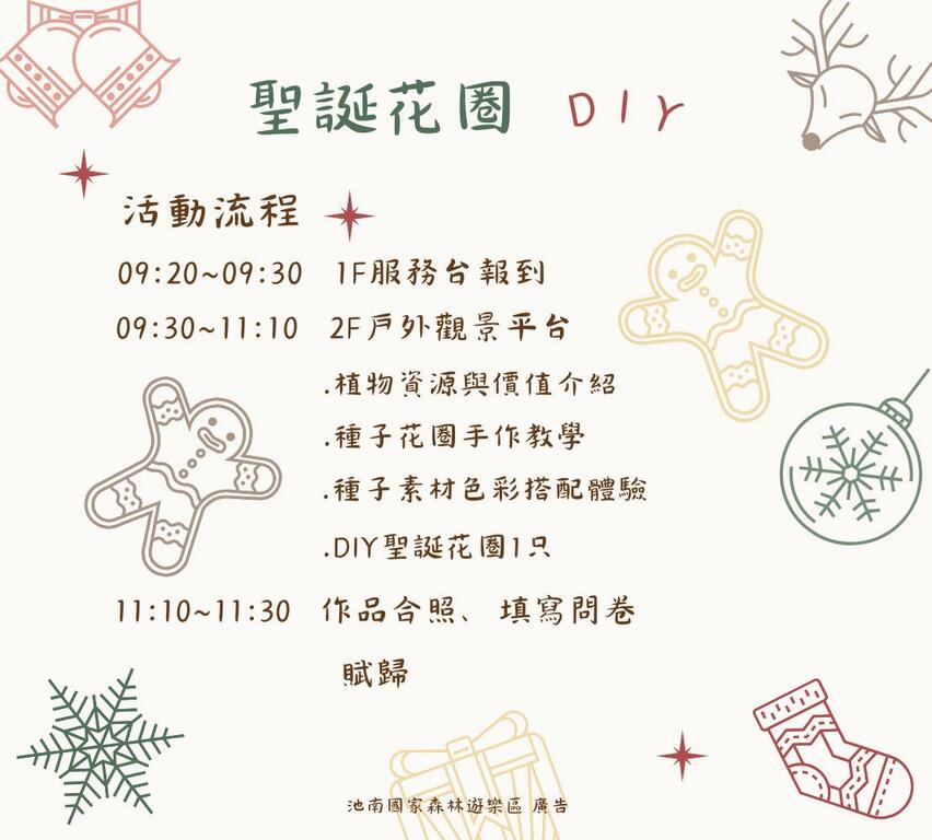聖誕節快到了,池南國家森林遊樂區推出限量『聖誕花圈』活動,邀您運用山野藤木與多樣種子,創作獨具風格的作品。手作課程中將發現生活與森林的連結,同時享受親近自然、增進親子情感的美好時光。