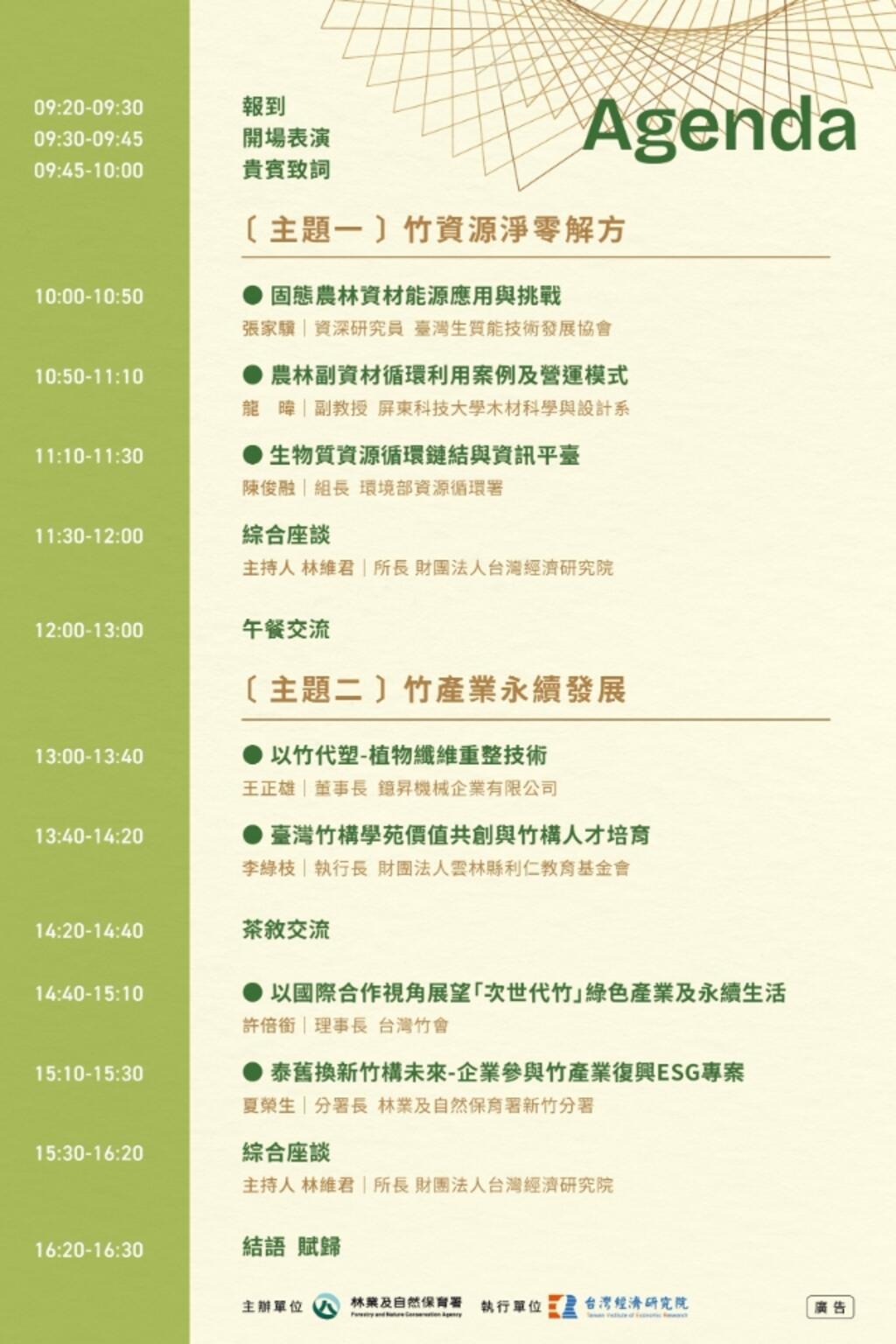 為勾勒「新興竹產業發展計畫」未來發展輪廓,透過兩大主題「竹資源淨零解方」以及「竹產業永續發展」,邀請國內專家學者共同探討竹產業未來減碳解方及驅動整體產業鏈的轉型經驗,誠摯邀請您一同參與。