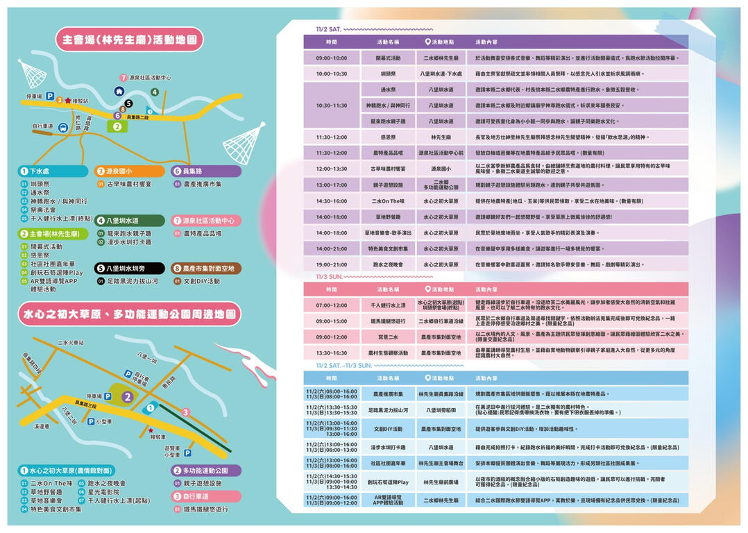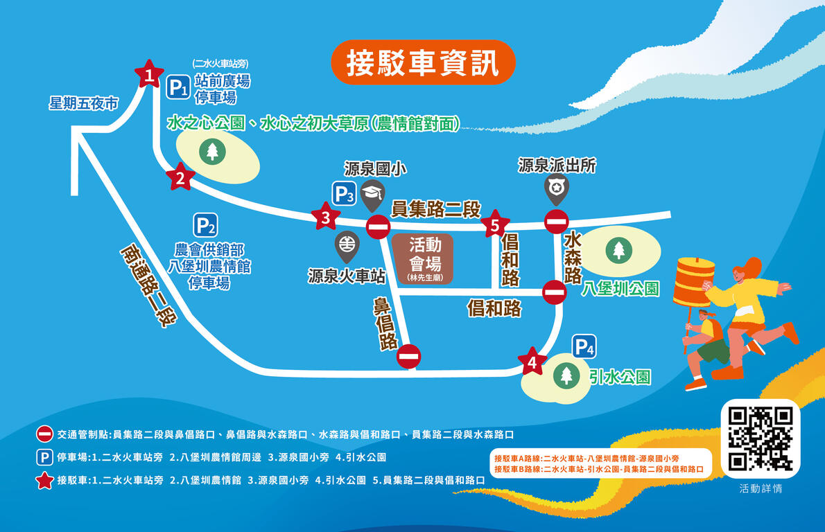A路線:二水火車站-八堡圳農情館-源泉國小旁 (113年11月2日上午8時至下午5時、112年11月3日上午8時至下午5時)