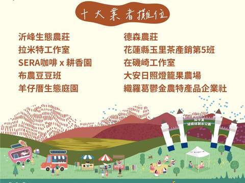 結合農村社區、在地商家、藝人歌手及在地表演者,與你們進行一場互動共享盛會,深入體驗花蓮豐富的農業和文化魅力。