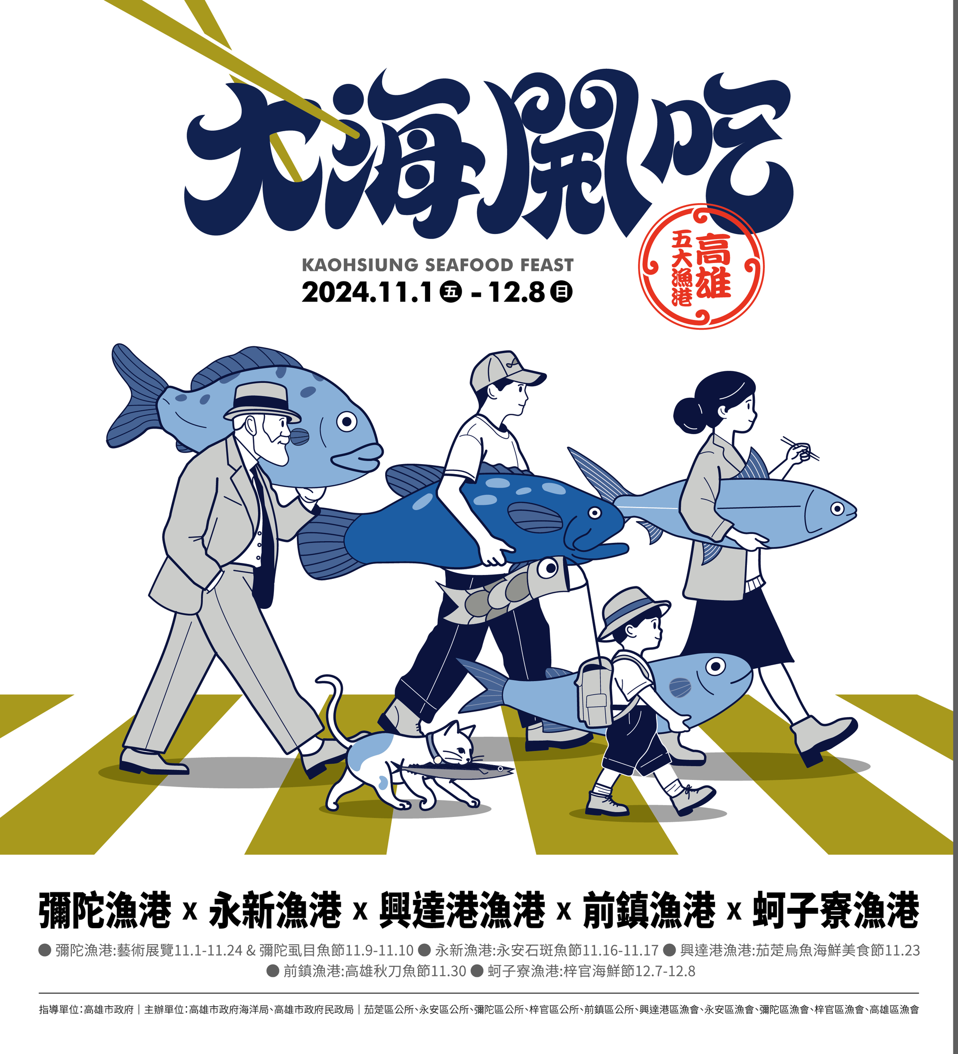 大型氣球裝置、高雄魚旗、立體打卡布景超好拍。還有機會把大海開吃活動限量貼紙帶回家。