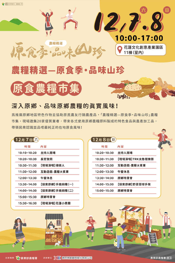 匯集20家原鄉業者,帶領民眾認識並品嚐最純正的原食風味。還有多組原鄉音樂人傾情演出及