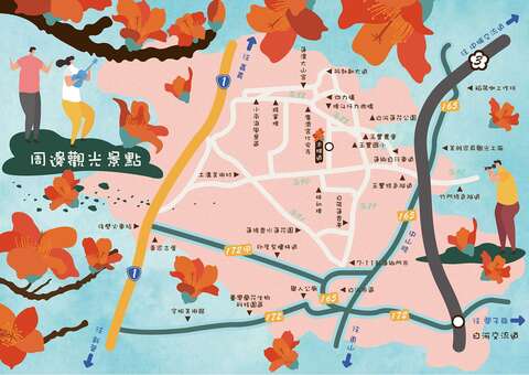 - 假日免費接駁專車:共4個接駁點,分別設置於白河蓮香亭、大竹停車場、南90木棉花道與土溝小蘋果便利商店斜對面。