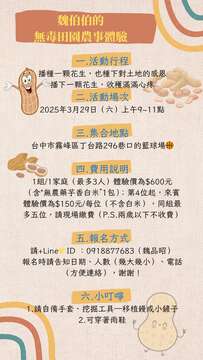 報名時請告知日期、人數(幾大幾小)、電話(方便連絡),謝謝!