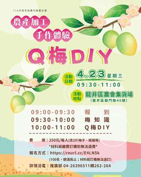 ※活動細節請洽主辦單位,農業易遊網僅供資料蒐集與整理;活動可能因颱風、豪雨特報等臨時狀況延期或取消。