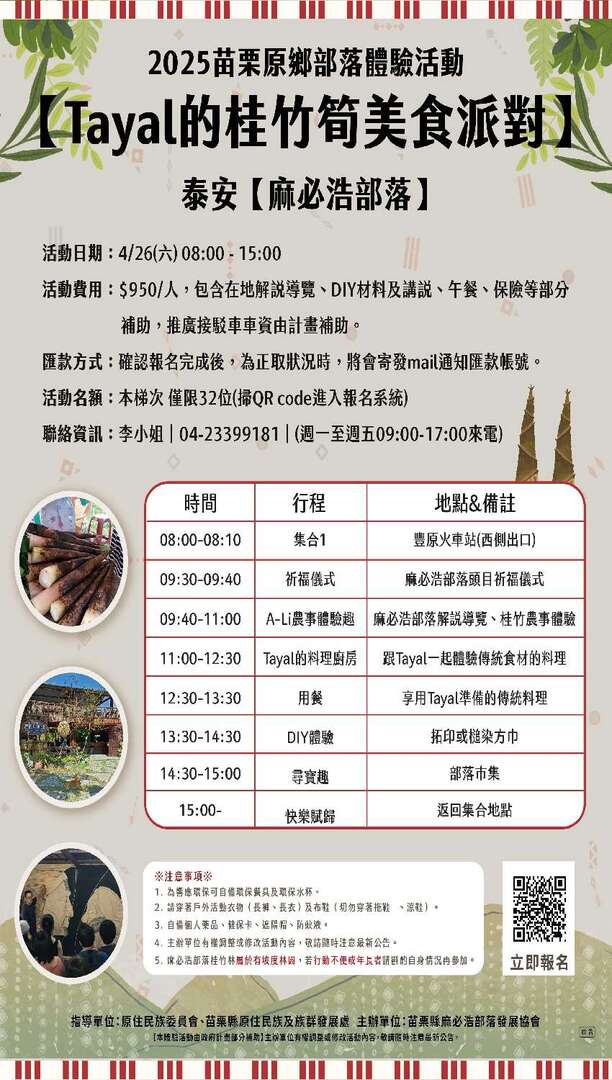 本活動為推廣苗栗原鄉體驗活動,名額有限,趕緊報名喔!