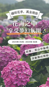 快來趟季節限定的繡球花旅,再隨著領路人深度探索古老漁村、走訪老街、遙望海景;嚐嚐當地現烤的地瓜,再來親自煮蛋,一路從公路看海、上山賞花、幽林漫步、在地體驗一次網羅才不虛此行,為這趟賞繡球花之行,留下美好的初夏回憶!