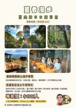 今年夏天我們推出「平日-薑麻園半日遊專案」,每人只需499元,就能輕鬆享受美好山林魅力。